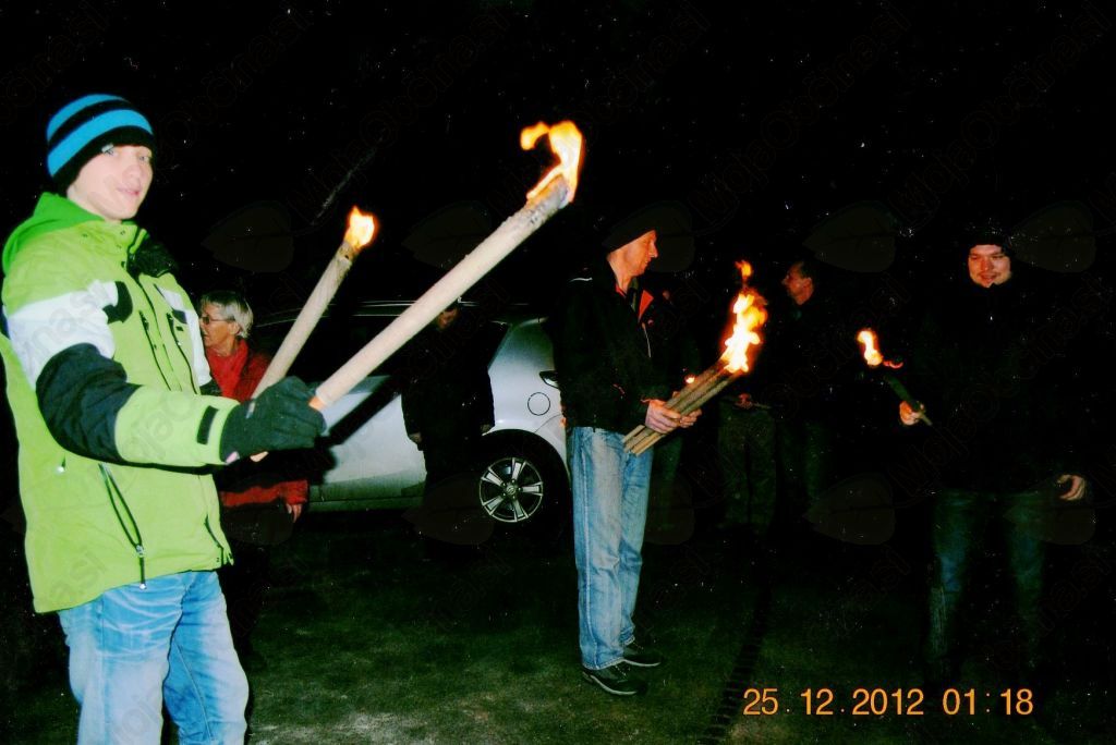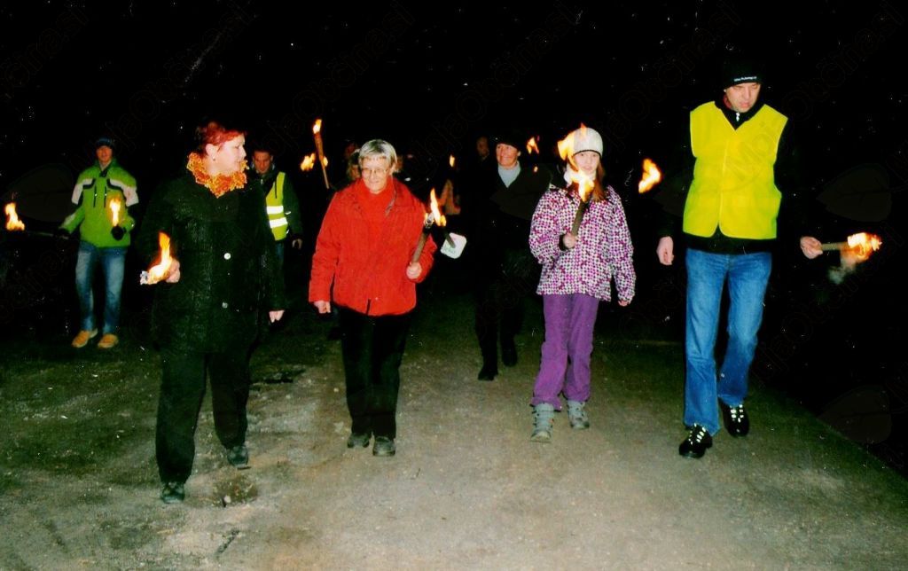 Pohod z baklami je bil že drugi po vrsti. Lani je bila noč jasna, letos pa nismo imeli te sreče; tako močno je pihalo, da smo bakle komaj prižigali. Tudi med sprevodom so ugašale – in tedaj smo morali k ugasli bakli primakniti kar dve ali tri goreče, da je spet zagorela.