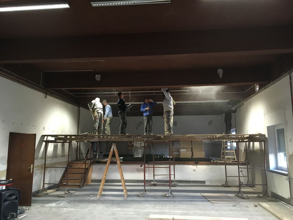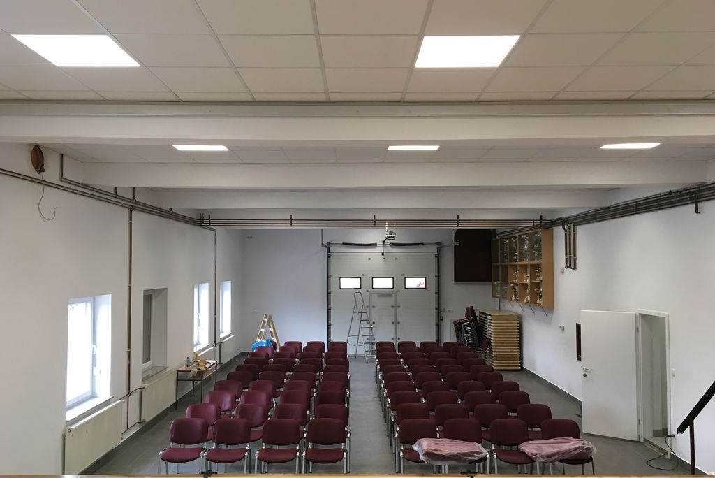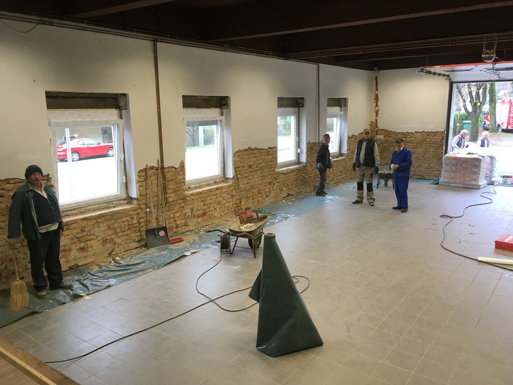 Osušili in obnovili smo tudi notranje omete v gasilski garaži, ki občasno služi kot kulturna dvorana. Primerno smo tudi uredili akustiko in razsvetljavo ter na novo obložili strop.