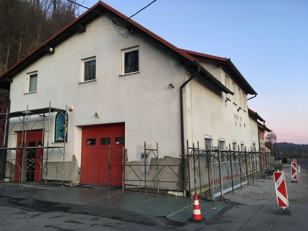 Januarja letos nam je vreme služilo in smo lahko pričeli z zadnjo, težko pričakovano večjo fazo obnovitve gasilskega doma – fasado. Odločili smo se za sistem Baumit Starlight Premium s Knauf Insulation FKD-S Thermal ploščami za kontaktne fasade, debeline 14 cm. Za izvajalca smo izbrali cenovno najugodnejšega ponudnika, podjetje LIBELA, Energetske in gradbene rešitve, Gašper Petkovšek s.p.