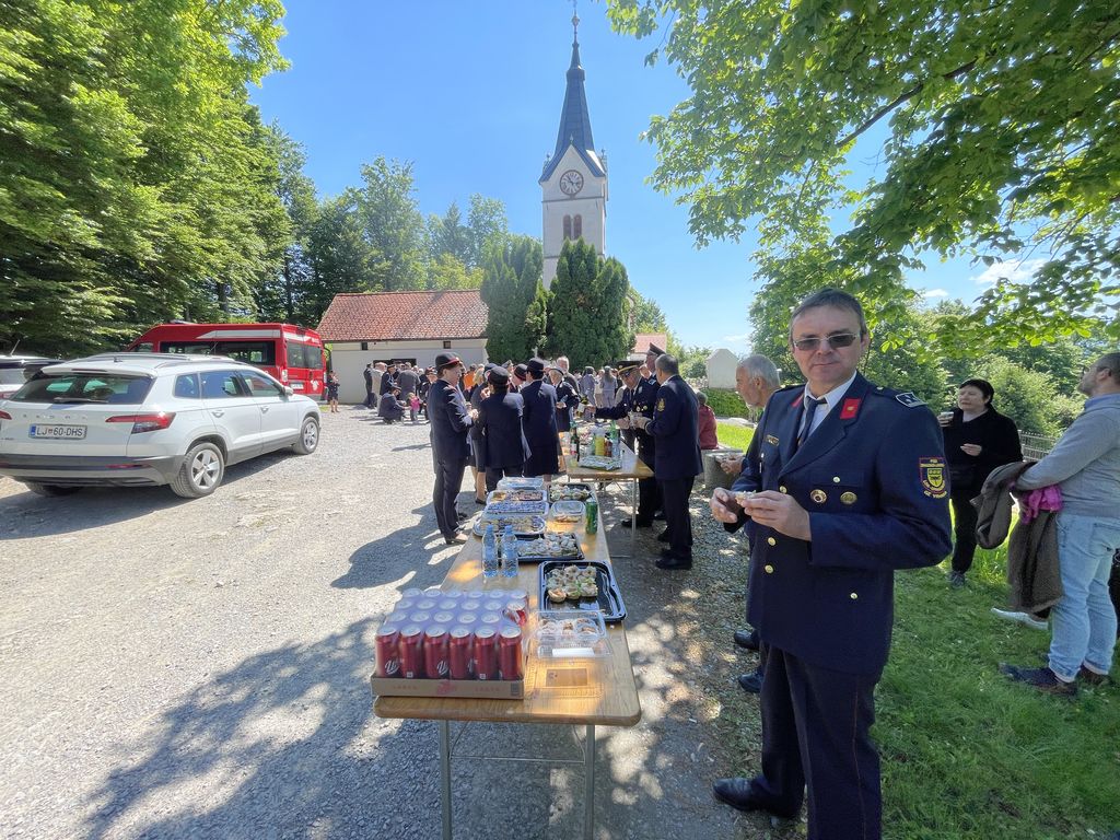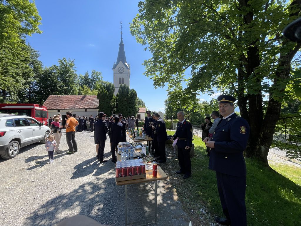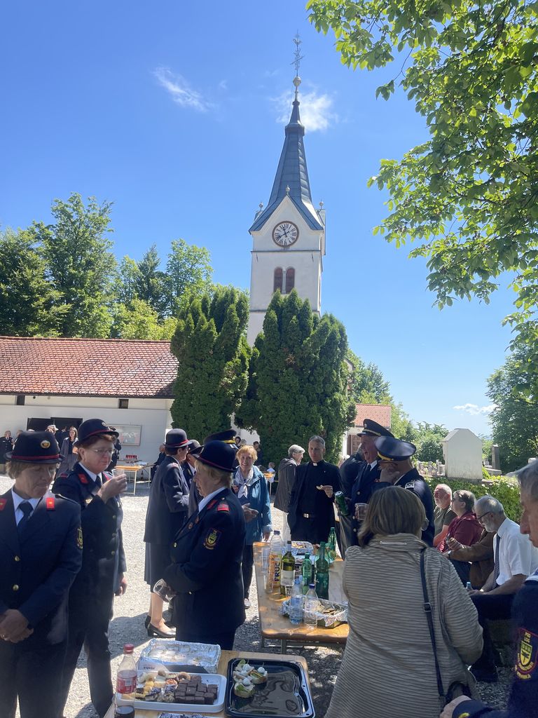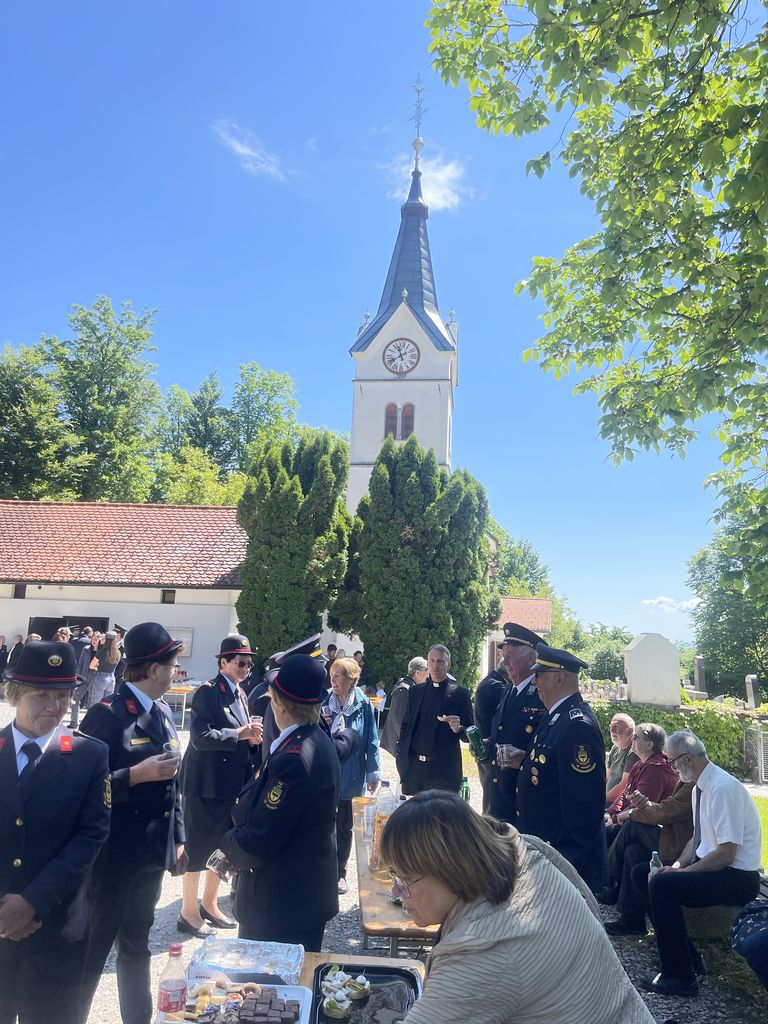 Slovesnost praznovanja se je nadaljevala na družabnem srečanju pred cerkvijo, kjer so nas domače gasilke in gasilci obilno pogostili. Taka srečanja nam pomagajo, da se med seboj bolje spoznamo. Ohranja pa se tudi spomin na naše prednike in na prvo gasilsko društvo, ki je bilo ustanovljeno leta 1898 in je že takrat povezovalo celotno Župnijo Brezovica.