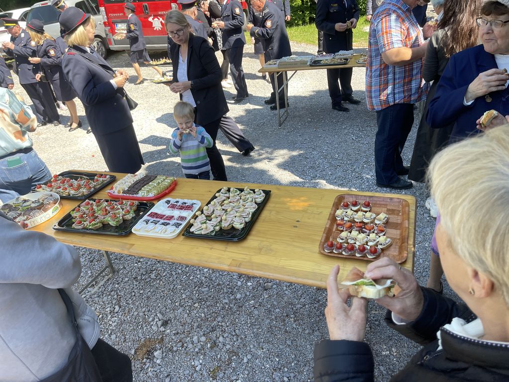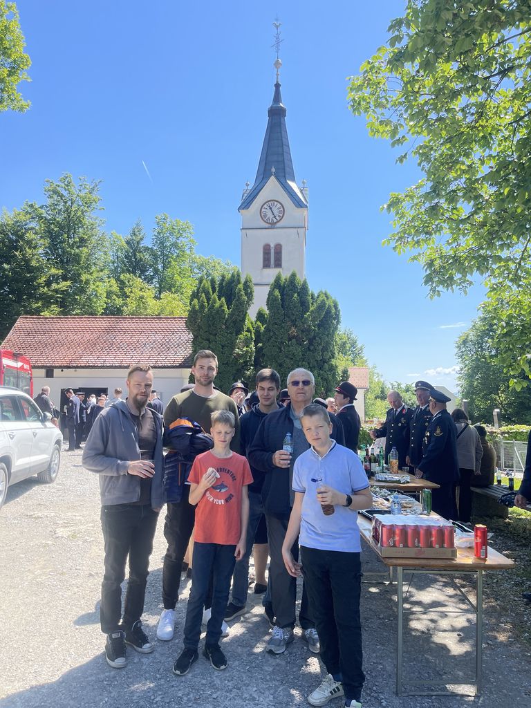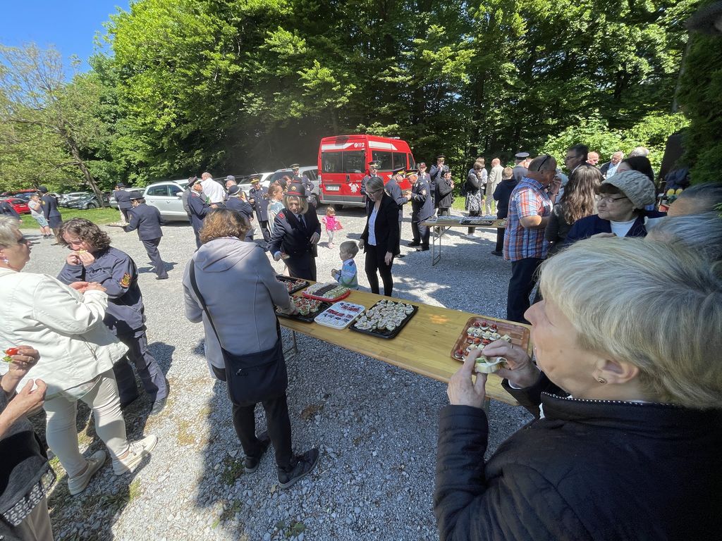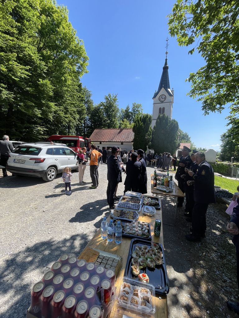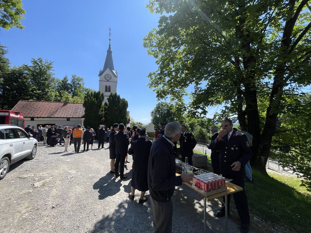 Slovesnost praznovanja se je nadaljevala na družabnem srečanju pred cerkvijo, kjer so nas domače gasilke in gasilci obilno pogostili. Taka srečanja nam pomagajo, da se med seboj bolje spoznamo. Ohranja pa se tudi spomin na naše prednike in na prvo gasilsko društvo, ki je bilo ustanovljeno leta 1898 in je že takrat povezovalo celotno Župnijo Brezovica.