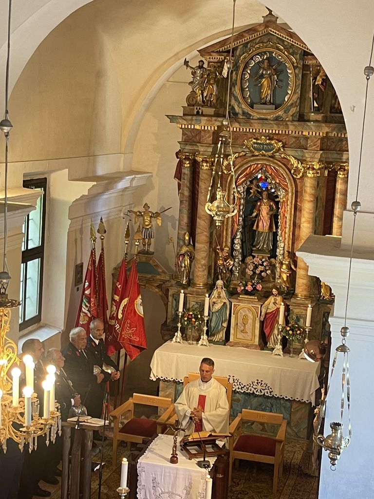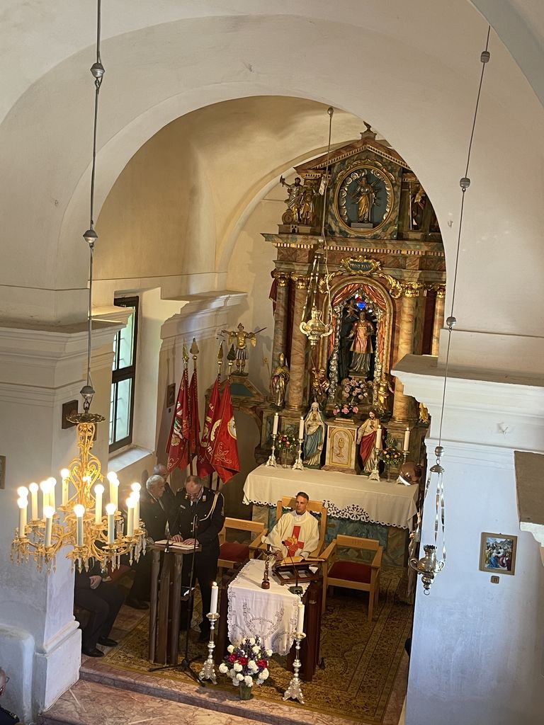 Ob spremljavi harmonija in ubranem petju pevk in pevcev na koru, je bilo še posebej slovesno, saj so v uvodu zapeli tudi gasilsko pesem, v čast Svetemu Florjanu. https://youtu.be/QuffDlicbB8