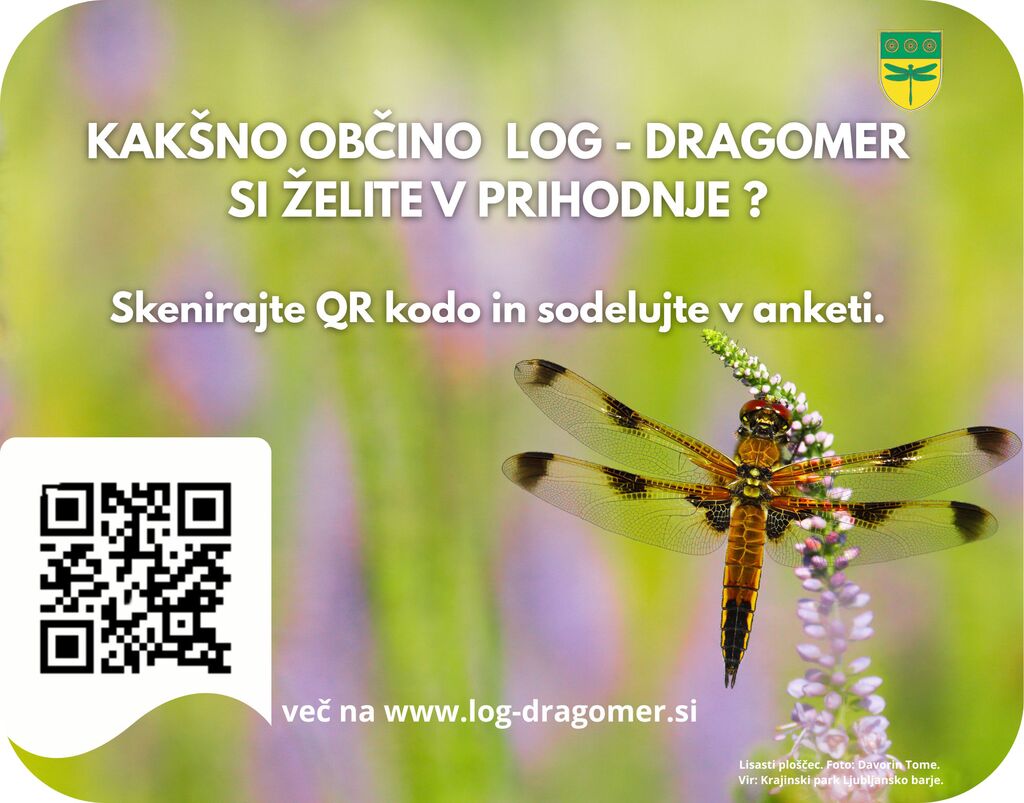 Za uspešno pripravo Strategije razvoja ter oblikovanje dolgoročnih, strateških in trajnostnih rešitev so nujno potrebna tudi vaša mnenja, izkušnje in predlogi, zato vas vljudno vabimo k izpolnitvi ankete, do katere lahko dostopate na spletni strani Občine Log - Dragomer oziroma preko QR kode med 16. marcem in 17. aprilom 2026.