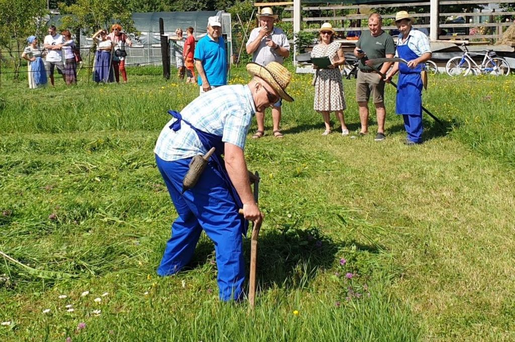 Poglejmo nekaj utrinkov: samo tekmovanje je potekalo na kmetiji Jožeta Čamernika, na kateri so že dan prej prostovoljci označili in izmerili tri enaka polja travnika. Obenem sta "arhitekta" Miha Lenaršič in Dare Fortuna ter mladi gasilci pričarali senčni nadstrešek na Čamernikovem kozolcu, da so se lahko tekmovalci in opazovalci občasno zaščitili pred žgočim soncem.
