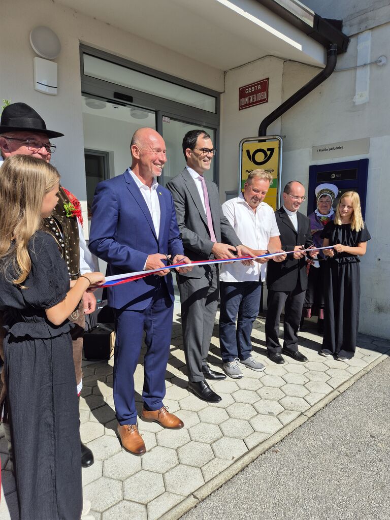 Log, 18. september - S slovesnim prerezom traku so v občini Log - Dragomer uradno odprli nove prostore pošte, ki so nastajali vzporedno z gradnjo nove lekarne.