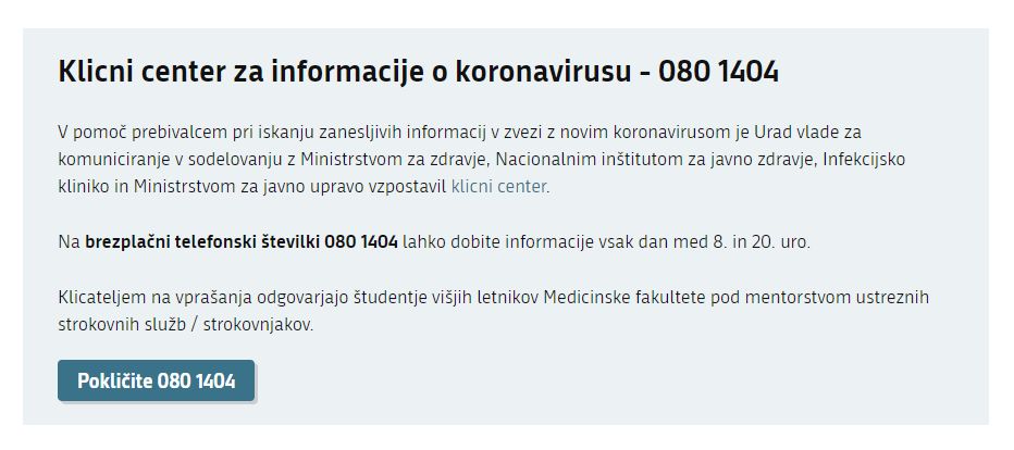 Informacije o novem koronavirusu so zbrane na portalu državne uprave GOV.SI https://www.gov.si/teme/koronavirus/,