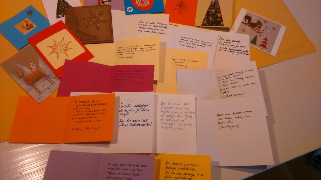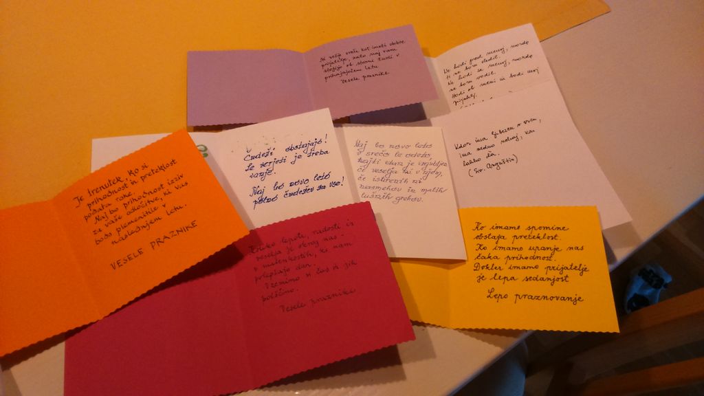 Projektu »Mala pozornost za veliko veselje«, vseslovenski akciji pisanja novoletnih voščil in izdelovanja čestitk za starejše so se pridružili tako v Koscu kot v Vrtcu Log - Dragomer. Projekt že peto leto zapored poteka pod okriljem DEOS Centra starejših Notranje Gorice. V akciji želijo zbrati 21 tisoč voščil za vseh 21 tisoč starejših, ki bivajo v centrih in domovih za starejše po Sloveniji. »Glede na trenutno situacijo in prepovedjo druženja se v KUD Kosec sekcija ročnih spretnosti povezuje preko spleta. Tako smo se odločili, da vsak član sekcije pripomore k projektu. V teh težkih časih je starostnikom v domovih in centrih še posebej težko. Obiski so omejeni ali jih sploh ni, potrebne so izolacije, prisotni so strah in stiske. To je tudi razlog, da smo se v društvu KUD Kosec odločili, da tudi mi pripomoremo k majhnemu delčku tega veselja,« nam je zaupala Anica Vengust. Pobudnica akcije, Ana Petrič , direktorica DEOS Centra starejših Notranje Gorice je vse, ki so se želeli pridružiti akciji prosila, da napišejo kratko pismo ali voščilnico z lepimi željami in pozitivnimi mislimi. Jih napišejo na roko, dovolj veliko in čitljivo ter se podpišejo in tako starostnikom, ki jih bodo prejeli, polepšajo praznike. »Ljubica Malavašič, Likar Helena in Ana Vrenk so izdelale preko 150 voščilnic. Sonja Inglič, Alenka Denša, Marjeta Zaninović, Anica Vengust, Draga Davitkova, Jožica Popit in Helena Likar pa so voščilnice napisale na roke, z velikimi črkami in lepih misli. Voščilnice smo predali DEOS, Domu starejših občanov v Notranji Goricah. Voščilnic bodo veseli predvsem tisti, ki nimajo svojcev in pogostih obiskov. Oddaljeni so od svojin najbližjih in tople domače besede. KUD Kosec se iskreno zahvaljuje vsem sodelujočim, ki so se odzvali in pripomogli pri tem projektu,« so še dodali v Koscu. Akciji so se pridružili tudi v Vrtcu Log - Dragomer, ki trenutno deluje v zelo okrnjeni obliki, le za nujno varstvo. Vzgojiteljice, starši in otroci so izdelali okoli 100 voščilnic.