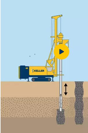 temeljnih tal z vibriranimi gruščnatimi slopi na severnem in južnem delu