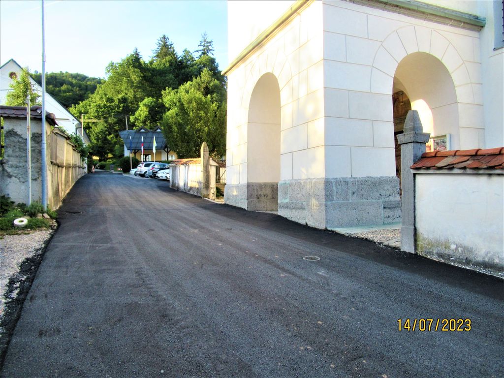 Ta teden so na Brezovici asfaltirali ceste okoli župnišča in pred cerkvijo. K sreči so z asfaltiranjem zaradi vremena, začeli dan kasneje. Tako je imel naš župnik še en dan časa, da je premislil vse detajle. Ocenil je, da bi bilo veliko bolje, če bi bilo pri zastavah še nekaj metrov robnikov. Zjutraj, ko so pripeljali stroje in asfalt, je g. župnik posredoval svoj predlog nadrejenim izvajalcem.  Ti so podprli njegov predlog in mu tudi pomagali tako, da je bil v eni uri narejen izkop, zabetonirani in zafugirani robniki, vse utrjeno in asfaltirano.