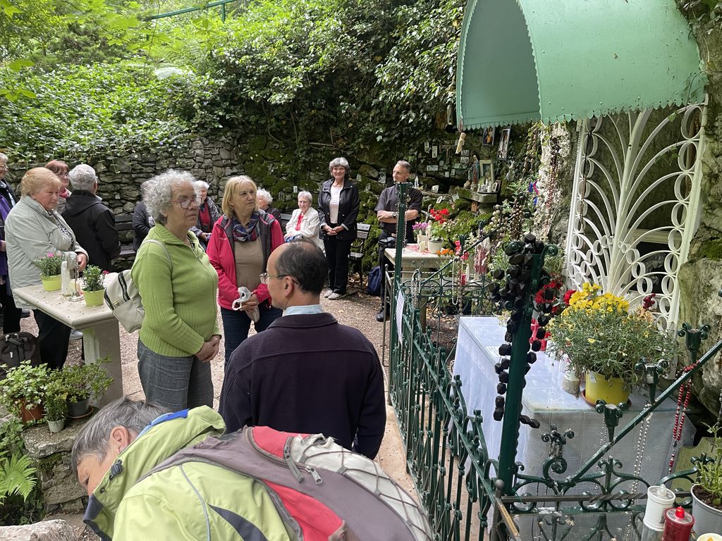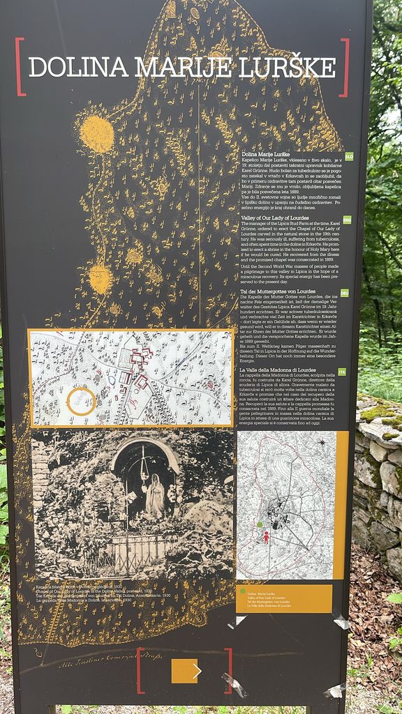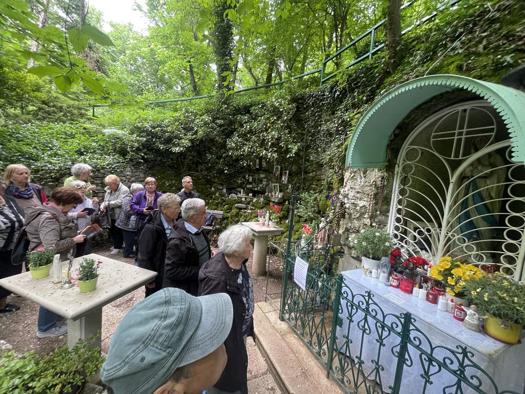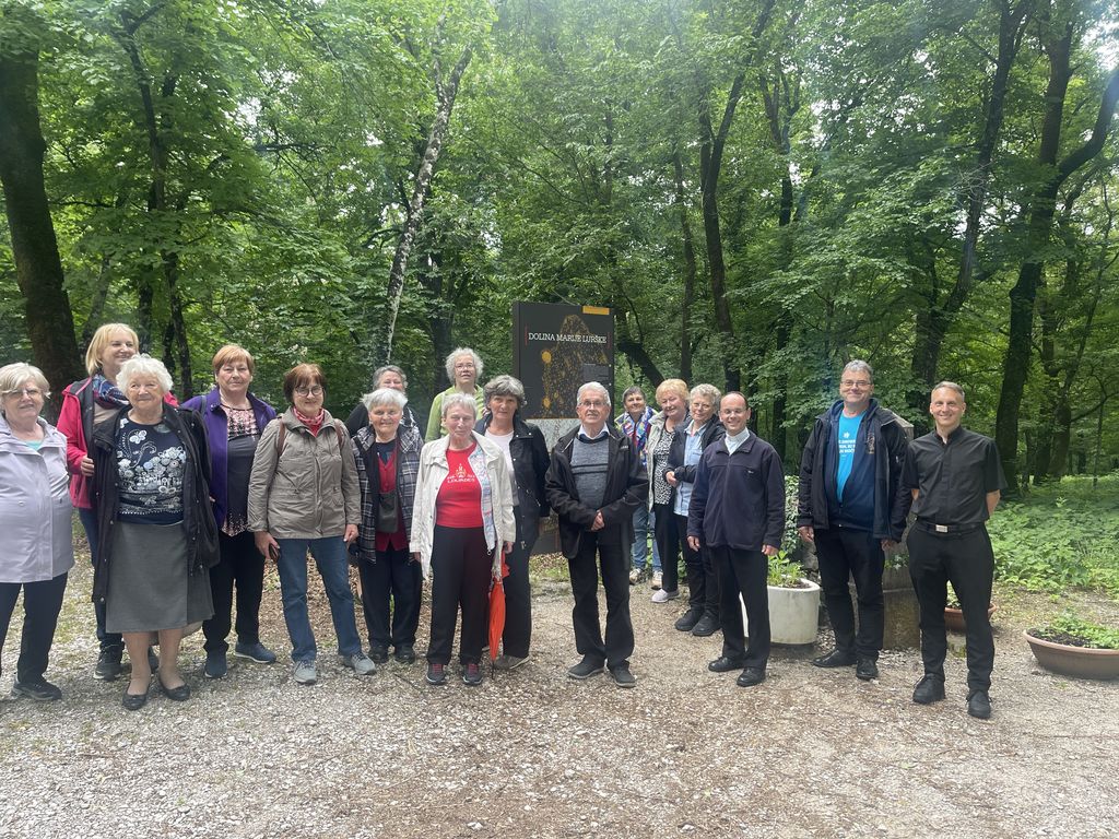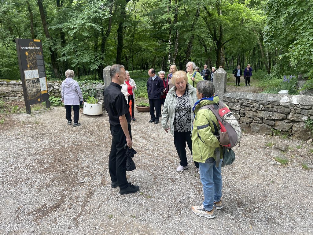 Iz Kopra smo se odpeljali proti Lipici, kjer se nam je pridružil tudi naš duhovni pomočnik, gospod Gregor Gorenc. Ob poti in v Lipici smo občudovali lepo prebujeno, urejeno naravno okolje in še kaj ter v Dolini Marije Lurške, pri kapelici zapeli litanije Matere Božje. Obujali smo tudi spomine na razcvet naših krajev po osamosvojitvi Slovenije, ko so tudi naše narodne noše, leta 1993, polepšale slovesnost blagoslova prenovljene Doline Marije Lurške.