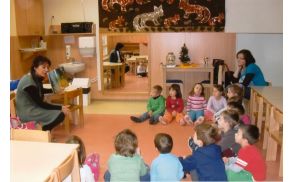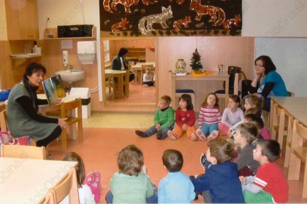 Komaj jo čakamo. Lepo pospravimo igrače, umaknemo mize, sedemo okoli nje in poslušamo. Včasih pripravi pravljice, primerne imenu skupin. Za Kresničke je pripravila knjigo Kresniček Nino. Otroci so pozorno poslušali in jo na koncu presenetili, ko so povedali, da smo vsebino večkrat brali v skupini.