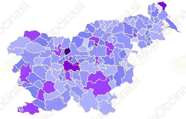 Občine: Bistrica ob Sotli, Brežice, Kostanjevica na Krki, Krško, Radeče, Sevnica Občine: Benedikt, Cerkvenjak, Cirkulane, Destrnik, Dornava, Duplek, Gorišnica, Hajdina, Hoče-Slivnica, Juršinci, Kidričevo, Kungota, Lenart, Lovrenc na Pohorju, Majšperk, Makole, Maribor, Markovci, Miklavž na Dravskem polju, Oplotnica, Ormož, Pesnica, Podlehnik, Poljčane, Ptuj, Rače-Fram, Ruše, Selnica ob Dravi, Slovenska Bistrica, Središče ob Dravi, Starše, Sveta Ana, Sveta Trojica v Slovenskih goricah, Sveti Andraž v Slovenskih goricah, Sveti Jurij v Slovenskih goricah, Sveti Tomaž, Šentilj, Trnovska vas, Videm, Zavrč, Žetale Občine: Borovnica, Brezovica, Dobrepolje, Dobrova-Polhov Gradec, Dol pri Ljubljani, Domžale, Grosuplje, Horjul, Ig, Ivančna Gorica, Kamnik, Komenda, Litija, Ljubljana, Log - Dragomer, Logatec, Lukovica, Medvode, Mengeš, Moravče, Škofljica, Šmartno pri Litiji, Trzin, Velike Lašče, Vodice, Vrhnika Občine: Bloke, Cerknica, Ilirska Bistrica, Loška dolina, Pivka, Postojna Občine: Ajdovščina, Bovec, Brda, Cerkno, Idrija, Kanal ob Soči, Kobarid, Miren-Kostanjevica, Nova Gorica, Renče-Vogrsko, Šempeter-Vrtojba, Tolmin, Vipava Občine: Apače, Beltinci, Cankova, Črenšovci, Dobrovnik, Gornja Radgona, Gornji Petrovci, Grad, Hodoš, Kobilje, Križevci, Kuzma, Lendava, Ljutomer, Moravske Toplice, Murska Sobota, Odranci, Puconci, Radenci, Razkrižje, Rogašovci, Sveti Jurij ob Ščavnici, Šalovci, Tišina, Turnišče, Velika Polana, Veržej Občine: Črnomelj, Dolenjske Toplice, Kočevje, Kostel, Loški Potok, Metlika, Mirna, Mirna Peč, Mokronog-Trebelno, Novo mesto, Osilnica, Ribnica, Semič, Sodražica, Straža, Šentjernej, Šentrupert, Škocjan, Šmarješke Toplice, Trebnje, Žužemberk Občine: Ankaran, Divača, Hrpelje-Kozina, Izola, Komen, Koper, Piran, Sežana Občine: Hrastnik, Trbovlje, Zagorje ob Savi Občine: Braslovče, Celje, Dobje, Dobrna, Gornji Grad, Kozje, Laško, Ljubno, Luče, Mozirje, Nazarje, Podčetrtek, Polzela, Prebold, Rečica ob Savinji, Rogaška Slatina, Rogatec, Slovenske Konjice, Solčava, Šentjur, Šmarje pri Jelšah, Šmartno ob Paki, Šoštanj, Štore, Tabor, Velenje, Vitanje, Vojnik, Vransko, Zreče, Žalec Občine: Črna na Koroškem, Dravograd, Mežica, Mislinja, Muta, Podvelka, Prevalje, Radlje ob Dravi, Ravne na Koroškem, Ribnica na Pohorju, Slovenj Gradec, Vuzenica Občine: Bled, Bohinj, Cerklje na Gorenjskem, Gorenja vas-Poljane, Gorje, Jesenice, Jezersko, Kranj, Kranjska Gora, Naklo, Preddvor, Radovljica, Šenčur, Škofja Loka, Tržič, Železniki, Žiri, Žirovnica Log - Dragomer