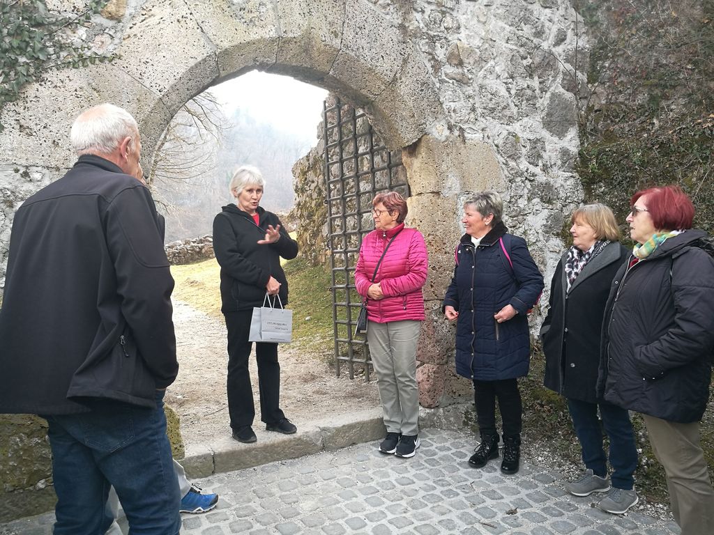 Kar prehitro je minila vožnja do Kamnika, kjer nas je prijazno pričakala lokalna vodička. Le nekaj korakov nas je ločilo do priljubljene pešpoti na Mali grad, ki leži na vzpetini nad starim mestnim jedrom. Seveda smo se pa pred rahlim vzponom okrepčali s kavico na terasi lokalčka tik pod gradom.