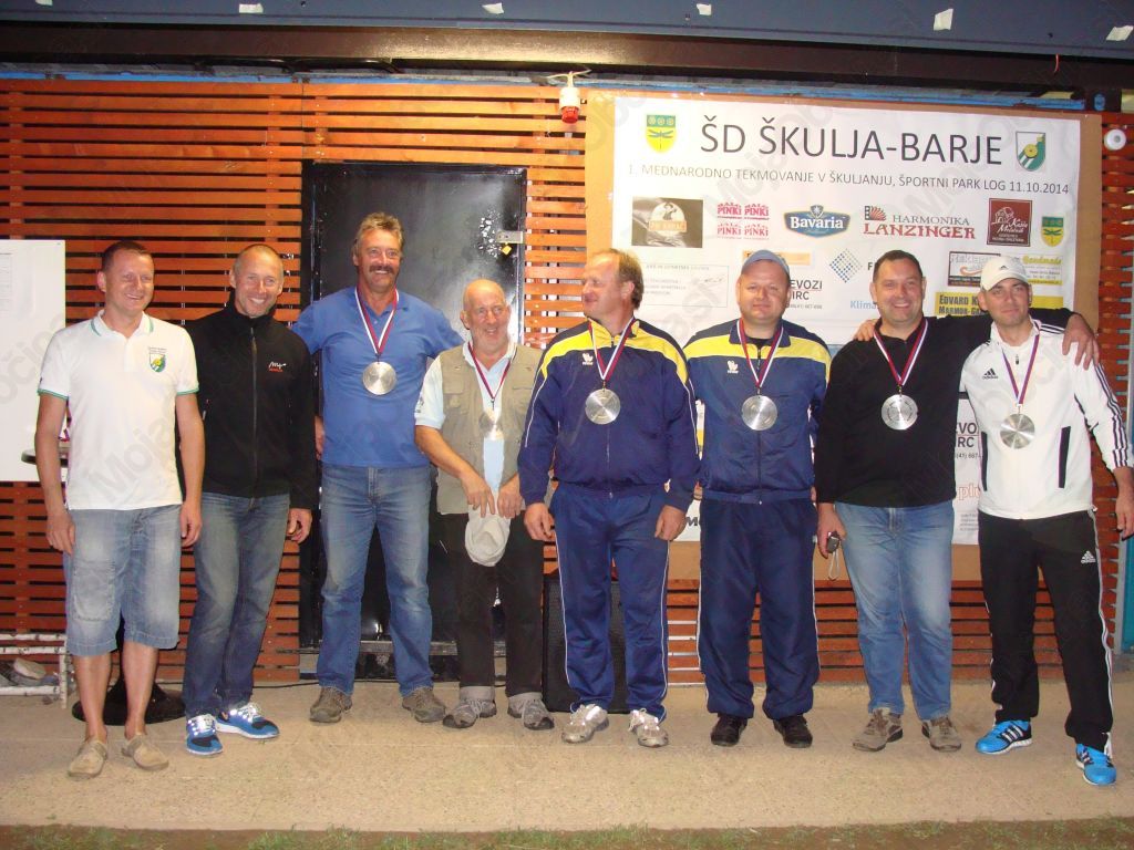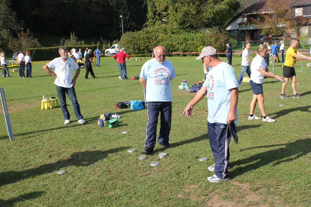 Tekmovalcev je bilo več kot petdeset, tekmovali so v dvojkah. Naši tekmovalci, ki so bili seveda najštevilčnejši, so se dobro postavili po robu starim mačkom tega športa, tako da se je kar nekaj dvojk uvrstilo v izločilne boje. Tam pa se je vendarle pokazalo, da nam še manjka izkušenj z velikih tekmovanj, in morali smo, kljub dobrim igram, priznati premoč gostom, ki so igrali še za razred bolje. Dvajset in več let izkušenj v tem športu je pač podatek, ki pove vse. Prav veselje je gledati te mojstre, s kakšno lahkoto »pokrivajo« balinčka. Vendarle pa se jim nekaj naših igralcev že kar hitro približuje in prav dvema od njih je uspelo priti do tekme za tretje mesto. Po izjemno izenačenem boju sta morala priznati premoč in na koncu osvojila odlično četrto mesto. To sta bila Miran Kumer in Mitja Šebenik. Tretje in drugo mesto sta osvojili ekipi z Vogrskega, pokal za prvo mesto pa je odšel v deželo tartufov, v Marčeneglo. Da pa je ena od nagrad ostala doma, je poskrbel naš Miran Kumer. Še enkrat je dokazal, da se lahko kosa z mojstri, saj je zmagal v metu v tarčo. Nagrade sta skupaj podelila predsednik ŠD Škulja Barje in naš vsem dobro znani sokrajan, Miran Stanovnik, ki si je kljub natrpanemu urniku z veseljem vzel čas za nas.