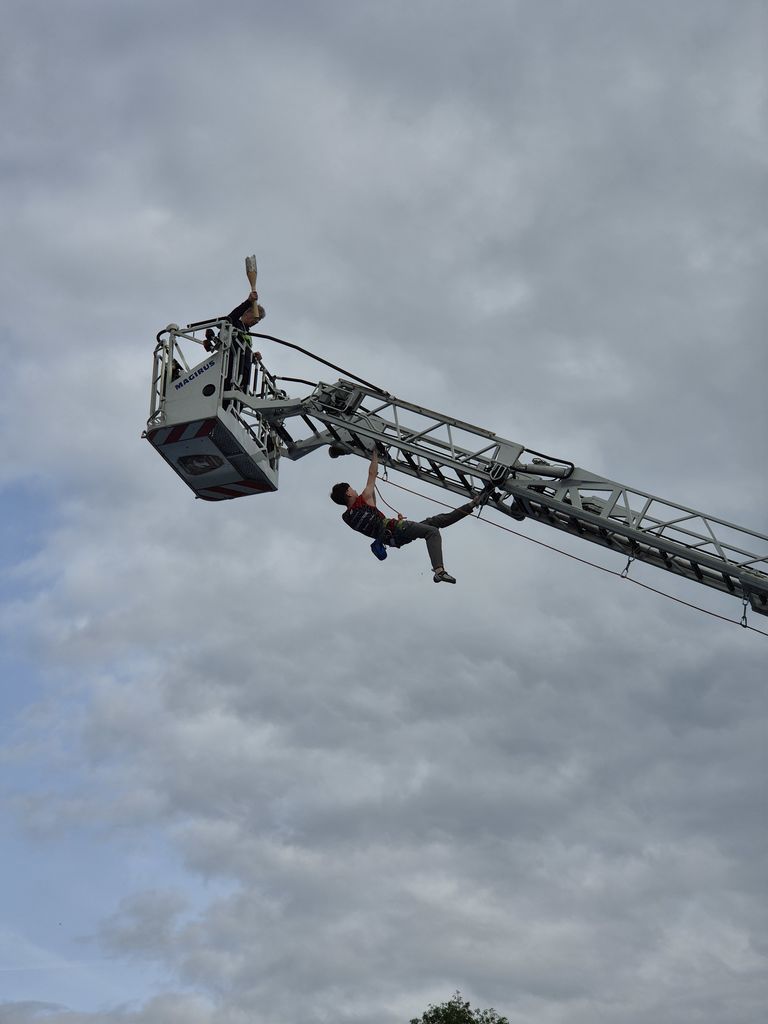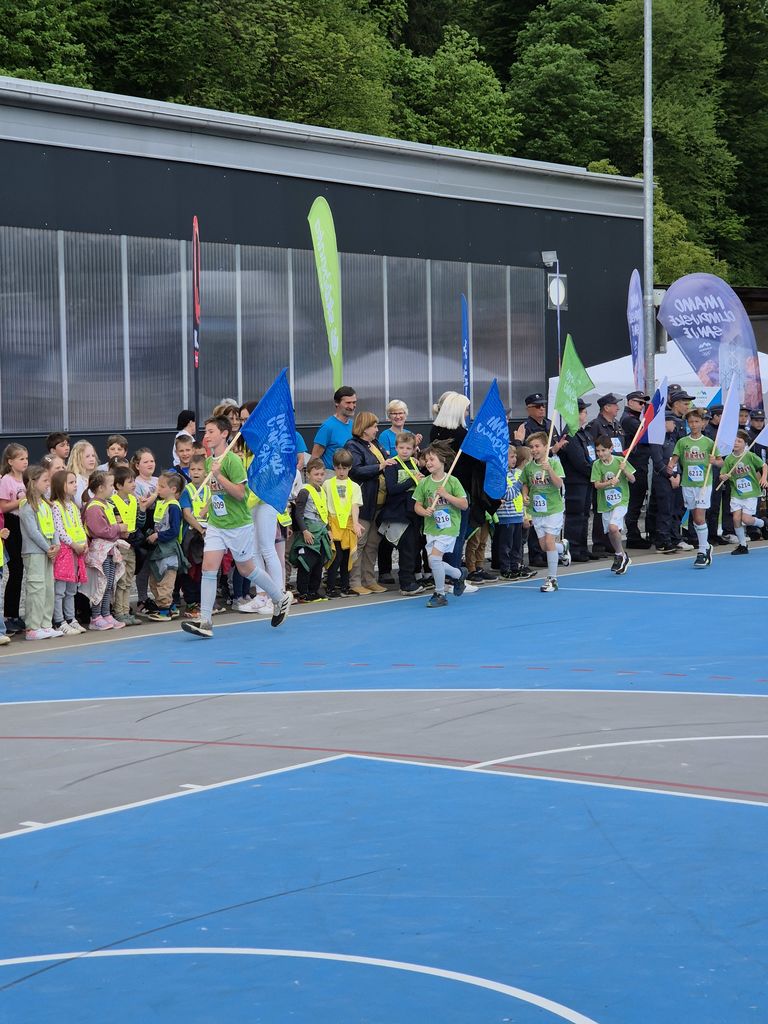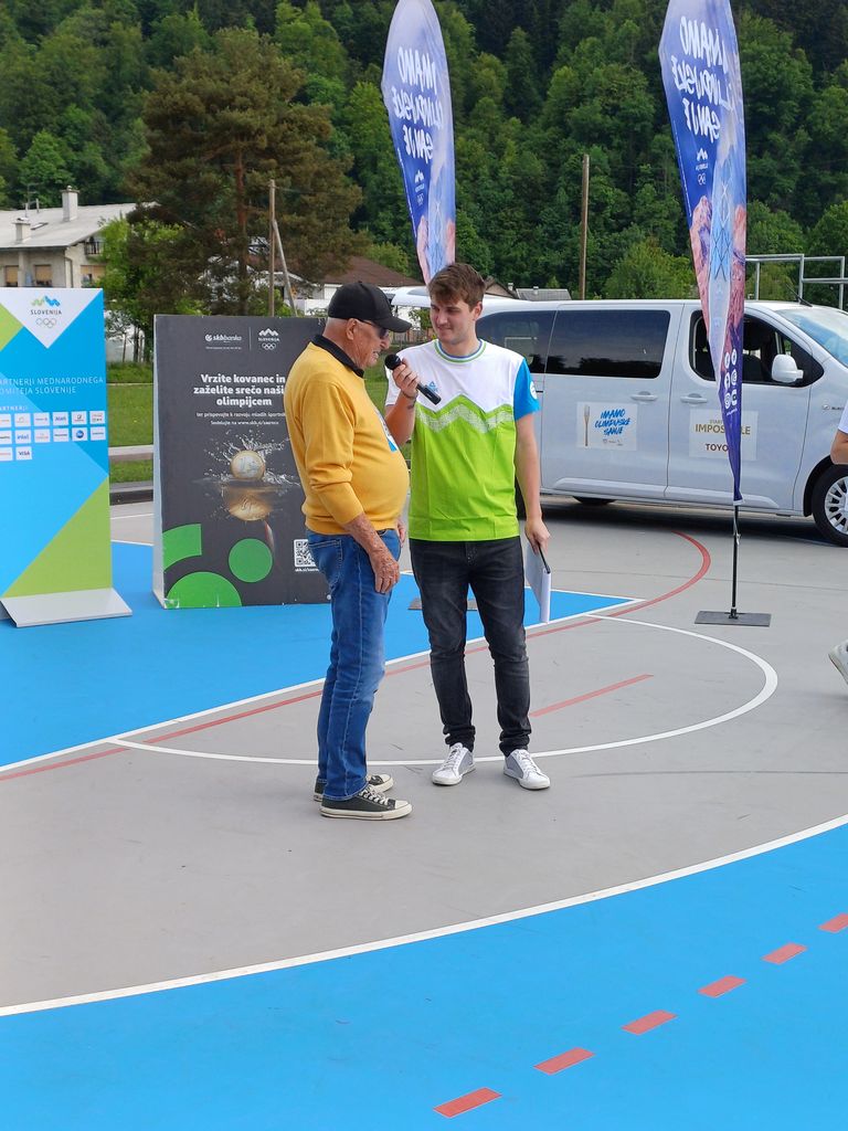 Začetna točka dogodka je bila dobesedno spektakularna, zanjo sta poskrbela nekdanji telovadec Enes Hodžič Lederer, ki bo letos na olimpijskih igrah v Parizu sodeloval kot sodnik gimnastičnih tekmovanj, in mladi športni plezalec Martin Stanovnik, ki sta baklo ponesla in spustila z visokega gasilskega dvigala.