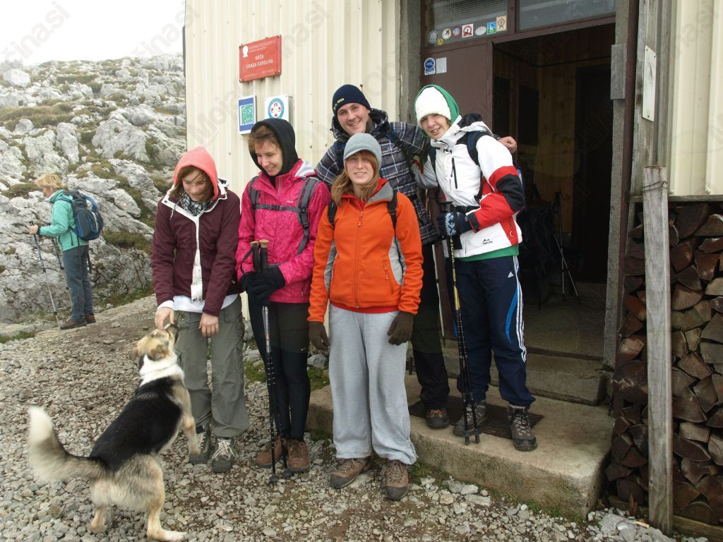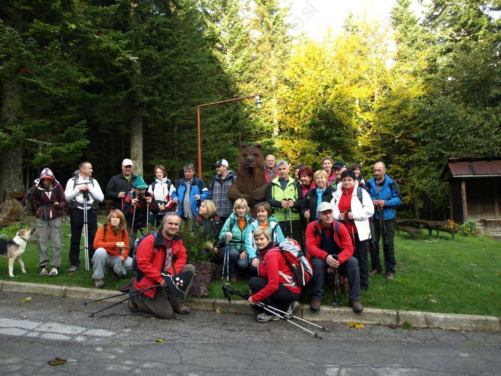 V koči Draga Karolina smo se malo okrepčali in potem nadaljevali pod navzdol po kamniti stezi skozi gosto rušje. Prišli smo do ravninice z opozorilno tablo »Botanični rezervat«, ki pove, da je območje od tu do vrha zavarovano. Od tam smo deloma po cesti, deloma po gozdni poti prispeli do koče na Sviščakih. Po krajšem postanku smo se z avtobusom odpeljali domov. Prvo vodenje sta zelo uspešno opravila naša nova vodnika, Aleš kot vodja in Jože kot pomočnik. Pohod je v celoti uspel. Vreme nam je bilo naklonjeno, tudi številčno nas je bilo veliko, kar 26, od tega 5 mladih pohodnikov, ki jih vidite na fotografiji.