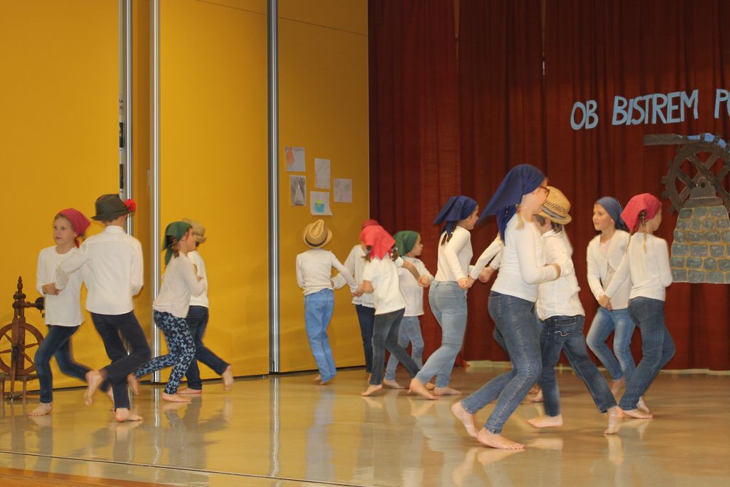 V večnamenskem prostoru osnovne šole so se zbrali otroci, ki jih druži veselje do ljudskega petja in plesa, ki je slovenskega človeka spremljalo ob vseh mejnikih njegovega življenja. Na odru smo lahko spremljali nastope štirih skupin. Prvi so se občinstvu predstavili mlajši Coklarčki iz Borovnice. Kako so dobili ime, je zbranim razložila povezovalka Brigita Žitko: »Med značilnimi posebnostmi našega ljudskega izročila so tudi šaljive medkrajevne nagajivke. Vasi so se med seboj večkrat šaljivo obmetavale s posmehljivimi vzdevki. Tako so Borovničani dobili vzdevek Coklarji, za kar naj bi bila zaslužna sveta Marjeta, zaščitnica borovniške cerkve, in vrhniški patron sveti Pavel, ki je med bežanjem pred vaškimi fanti izgubil coklo.« Skupina deluje dve leti in ima že več kot 35 članov. Srečujejo se enkrat na teden, ko plešejo, pojejo, pazijo na držo, razdalje, oblikovanje lepega kroga in se igrajo igre, kakršne so se igrali nekoč. Zaradi velikega števila otrok so nastopili v dveh skupinah. Mlajši Coklarčki so se predstavili z otroško igro Rinčico talam, otroškim ljudskim plesom mat' so rekli kovtre šivat ter notranjskima ljudskima plesoma kovtre šivat in špic polka. Skupino vodita mentorici Sara in Kristina Košir.