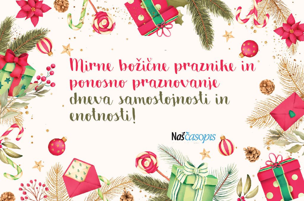 Želimo vam mirne božične praznike in ponosno praznovanje dneva samostojnosti in enotnosti!