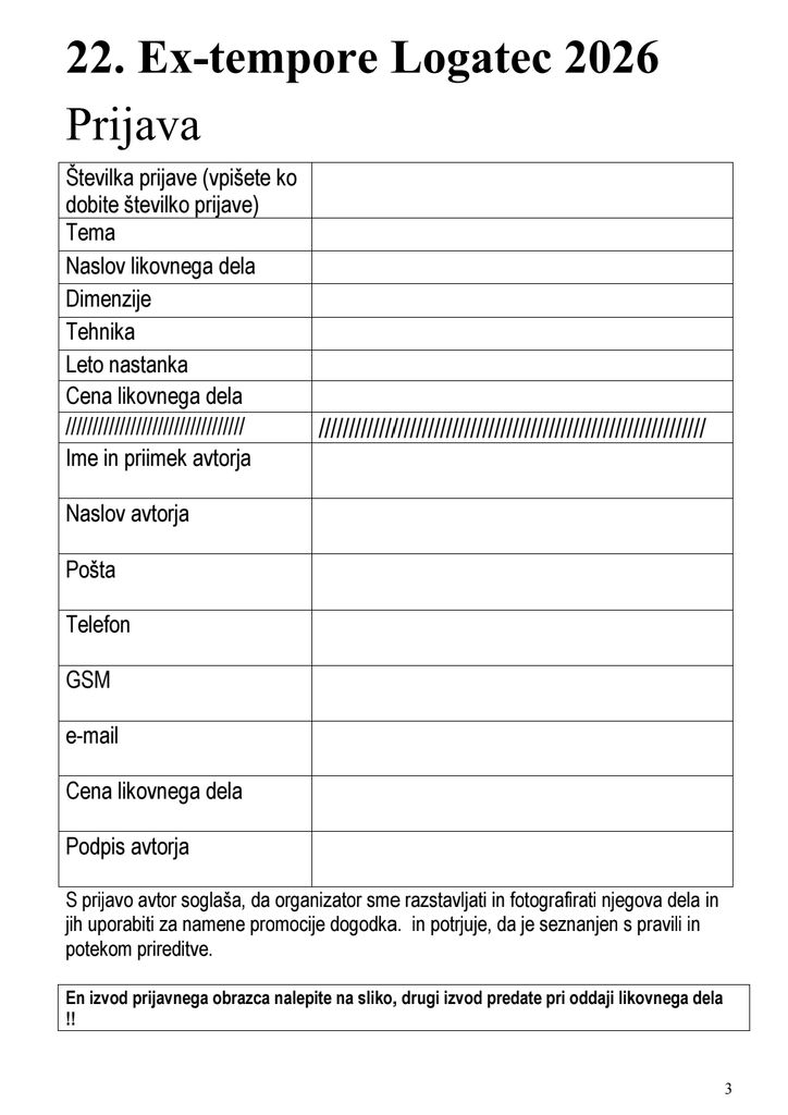 Eno kopijo prijavnega obrazca boste tudi oddali pri oddaji likovnega dela!