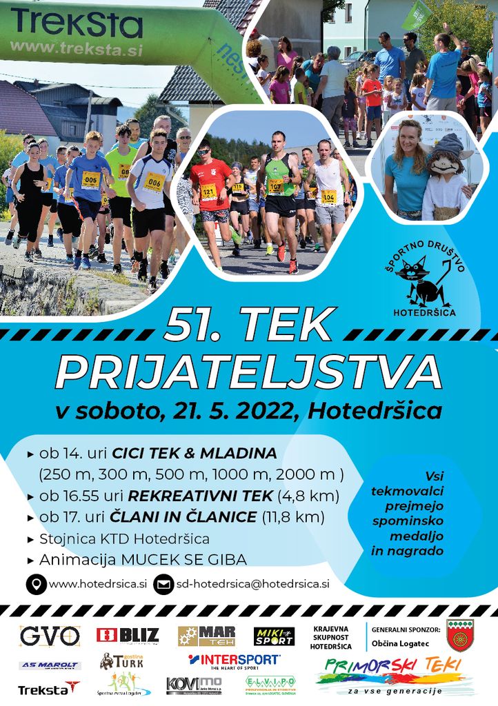 Športno društvo Hotedršica vabi na tradicionalni 51.Tek prijateljstva v soboto 21.5.2022.