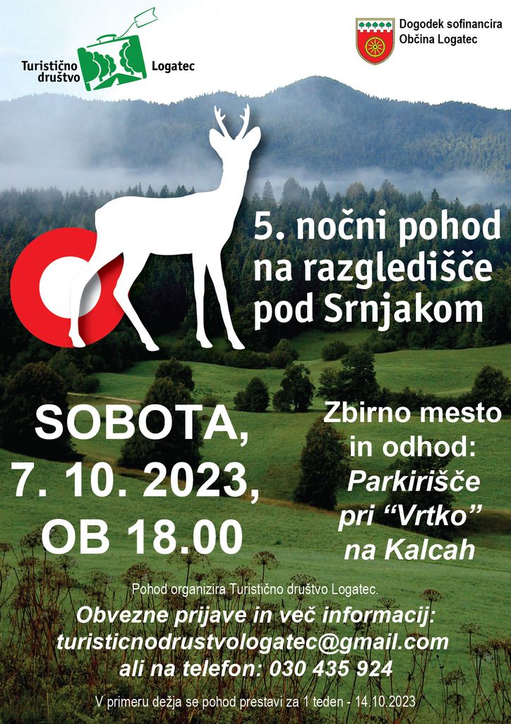 Turistično društvo Logatec vabi na 5.nočni pohod na razgledišče pod Srnjakom.