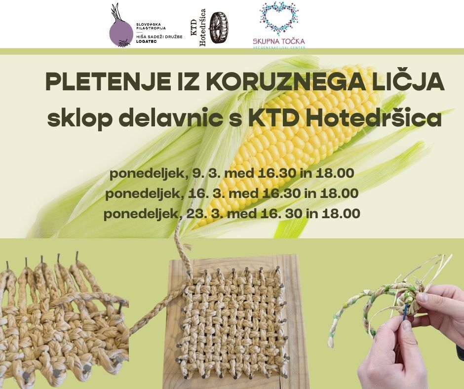 V ponedeljek, 9. 3., 16. 3. in 23. 3. med 16.30 in 18.00 v Hiši Sadeži družbe Logatec bosta ponovno z nami pletarki Barbara Zelenec in Brigita Vehar iz KTD Hotedršica.