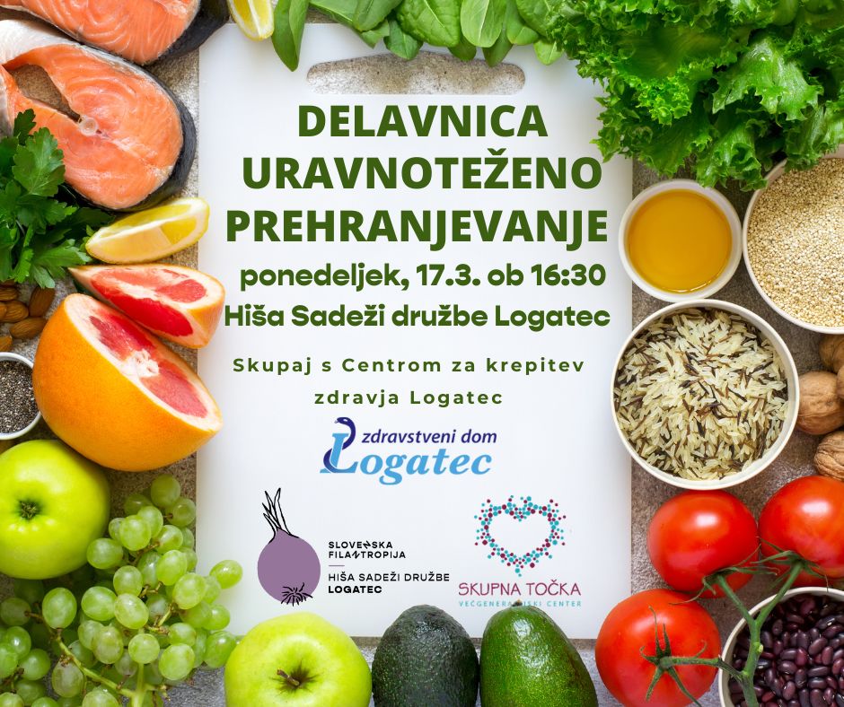 S Centrom za krepitev zdravja vas vabimo na delavnico URAVNOTEŽENO PREHRANJEVANJE, v ponedeljek, 17.3. ob 16:30 v Hišo Sadeži družbe Logatec.