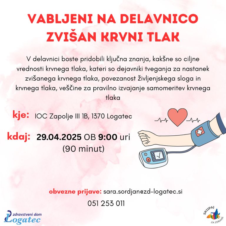 Kontaktni podatki organizatorja: Sara Šordjan 051 253 011 ali sara.sordjan@zd-logatec.si.