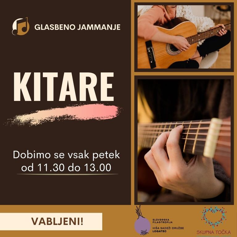 Če rad-a igraš kitaro, ali pa kakšen drug inštrument, vključno s tvojim glasom - vabljen-a v našo družbo vsak petek ob 11:30.