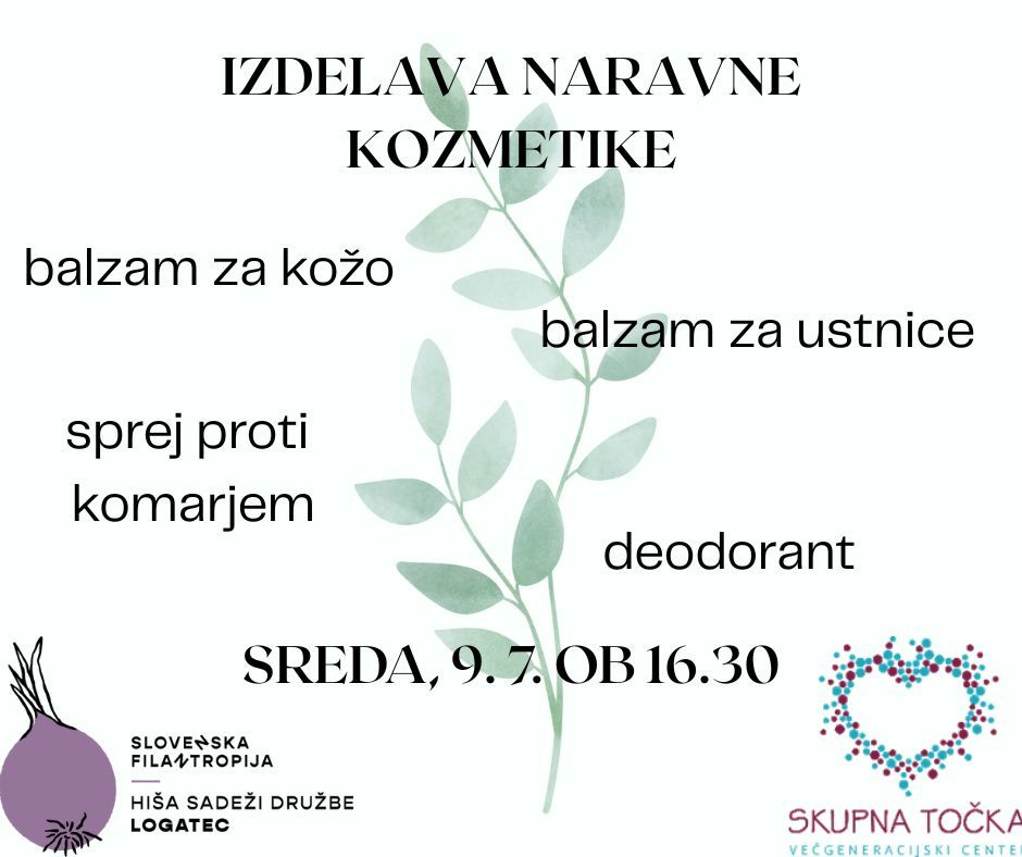 V Hiši Sadeži družbe bomo izdelovali naravno kozmetiko! Iz kokosovega olja, čebeljega voska in eteričnih olj bomo pripravili balzam za kožo, balzam za ustnice, sprej proti komarjem in deodorant.