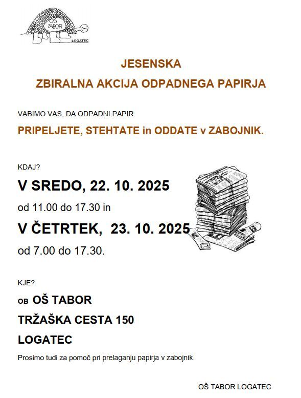 Kontaktni podatki organizatorja: Šola Tabor Logatec, tajnistvo@os-tabor.si, +386 (0)1 759 08 50.