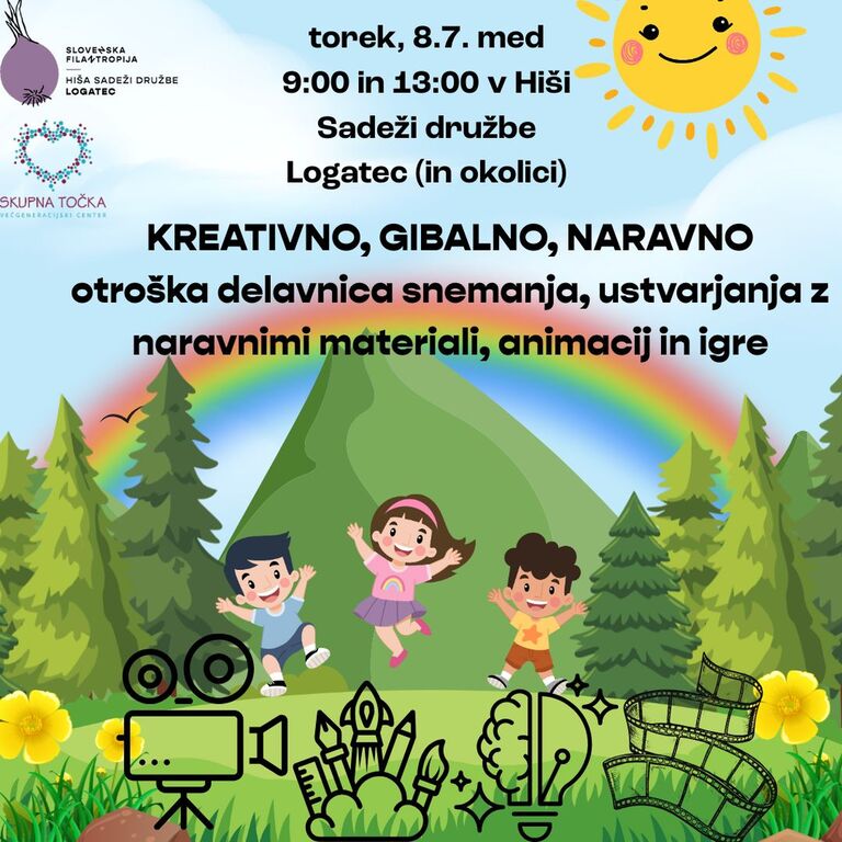 V torek, 8.7. bomo med 9:00 in 13:00 skupaj ustvarjali, se podili po gozdu, snemali, se učili o izdelavi animacij, izdelovali kreacije iz naravnih materialov, se družili in predvsem imeli FAJN!