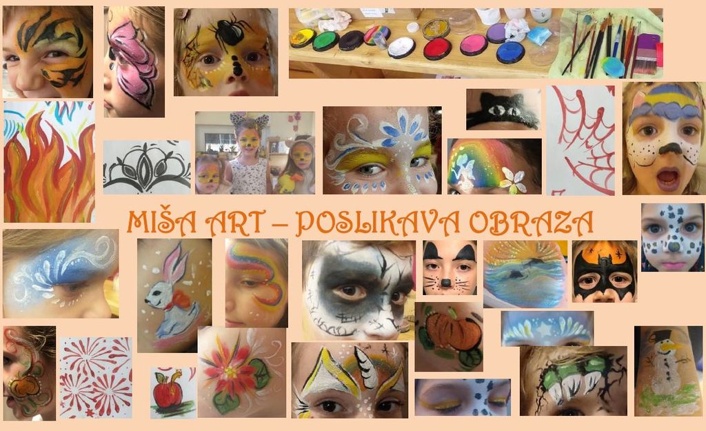 Za čudovite obrazne poslikave bo poskrbela Miša Kopač. Za poslikavo uporablja profesionalne, dermatološko testirane in vodotopne barve za obraz v skladu z zahtevami o varnosti igrač 2009/48/EG. Odstranijo se enostavno z vodo ali vlažilnimi robčki. Čopiči so kvalitetni in prijetni za kožo.