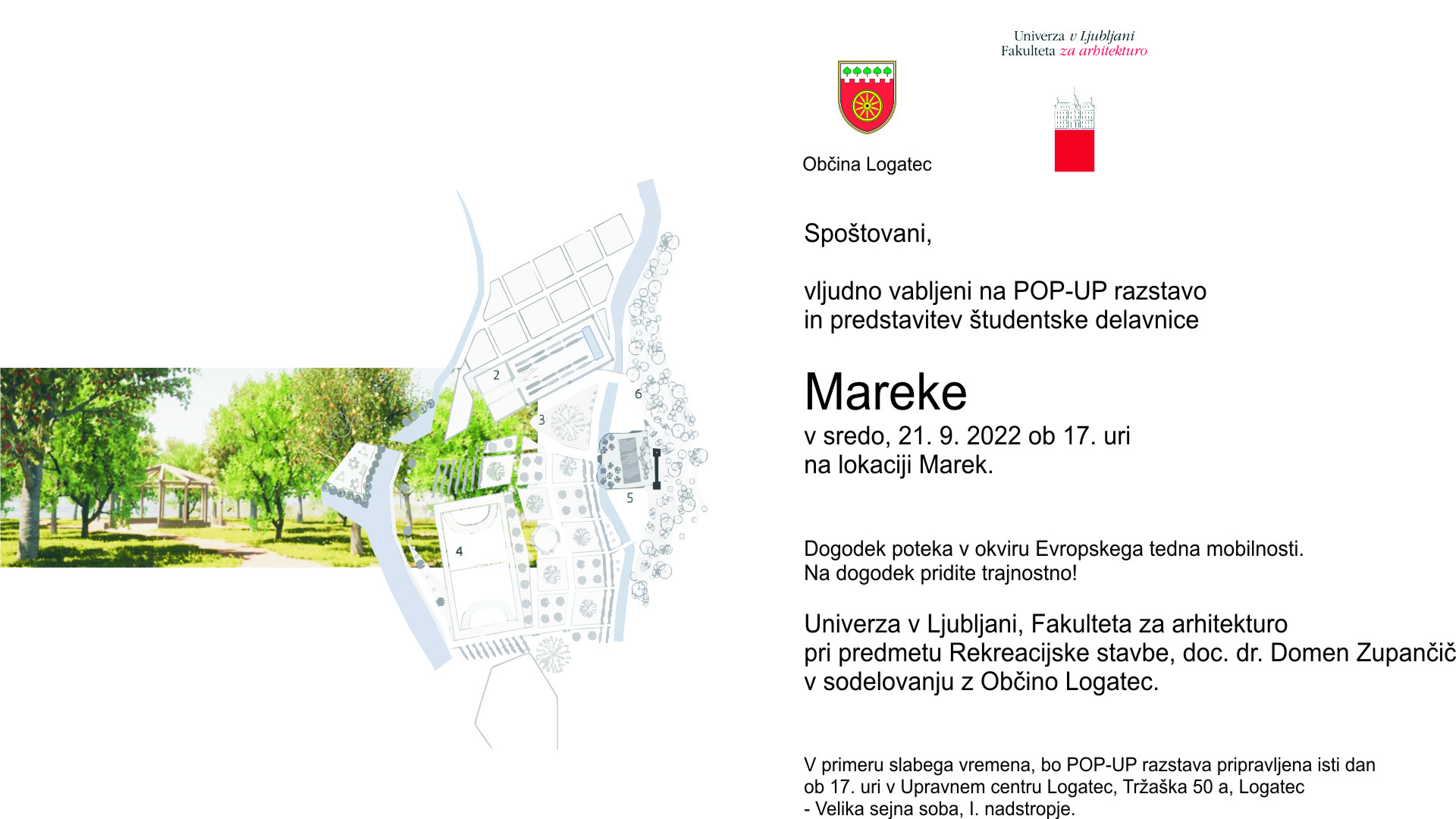 Občina Logatec je z Univerzo v Ljubljani, Fakulteto za arhitekturo sodelovala z mentorjem doc. dr. Domnom Zupančičem pri predmetu Rekreacijske stavbe. Študenti so pripravili idejne rešitve za preoblikovanje območja Marek.