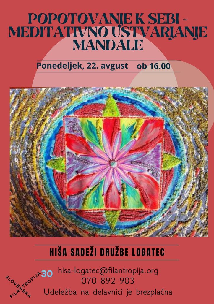 Skozi ustvarjanje mandale se bomo podali na popotovanje v naš notranji svet. Ustvarjali bomo iz trenutnega navdiha, raziskovali sproščenost in igrivost ter prisluhnili tihemu glasu v nas (intuiciji), ki nas bo vodil v naši kreativnost.