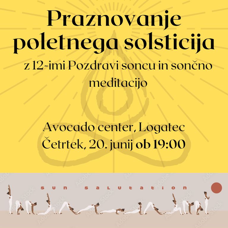 Vabim te na čudovito potovanje in praznovanje poletnega solsticija, časa v letu, ko prižgemo naše notranje sonce, zaživimo, vstopimo v svojo moč in začutimo podporo poletja, ki prihaja. Nežno se bomo prizemljili in vstopili v trenutek praznovanja vstopa v najsvetlejši in najtoplejši del leta. Sledilo bo 12 POZDRAVOV SONCU, s katerimi se bomo povezali kot skupina, začutili svoj notranji ogenj in usklajenost našega telesa z vsem, kar je. Sledila bo še sončna meditacja, s pomočjo katere se bomo umirili, sprostili in znotraj sebe postavili namere za najaktivnejši del leta. Čas za manifestacijo je tu!