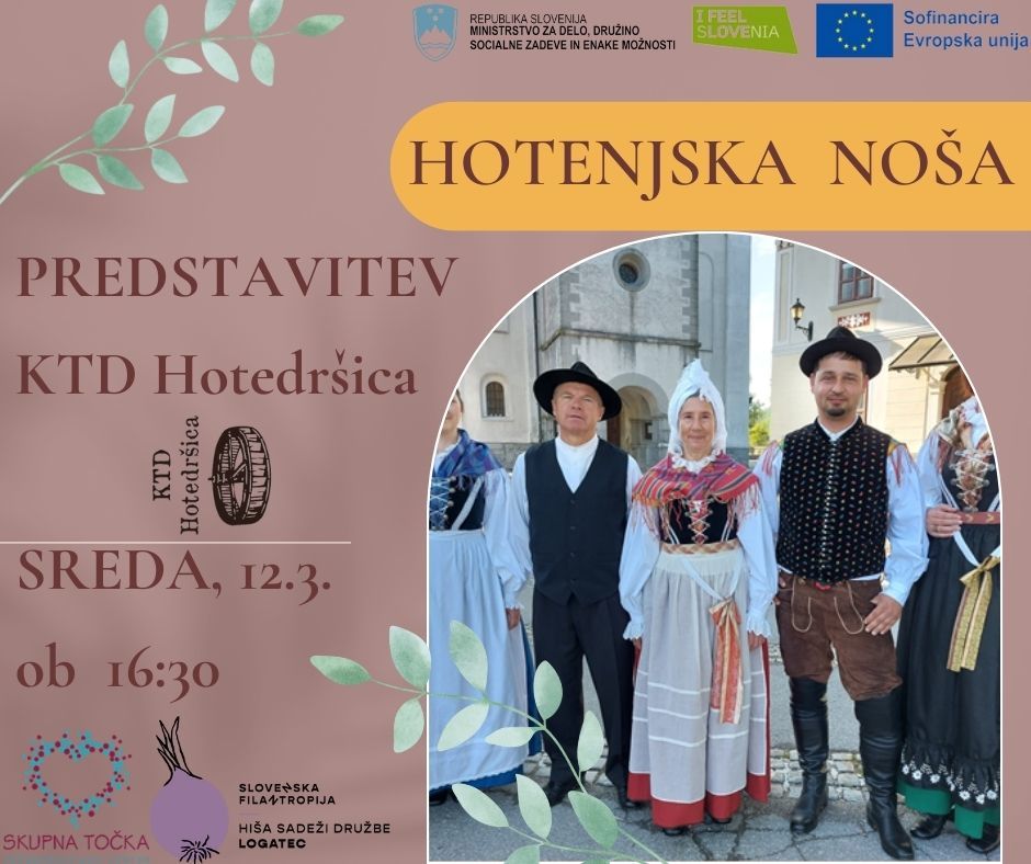 V sredo, 12.3. ob 16:30 bo pri nas na obisku Kulturno turistično društvo Hotedršica (KTD Hotedršica), ki nam bo predstavilo njihov hotenjski pripadnostni kostum - nošo!