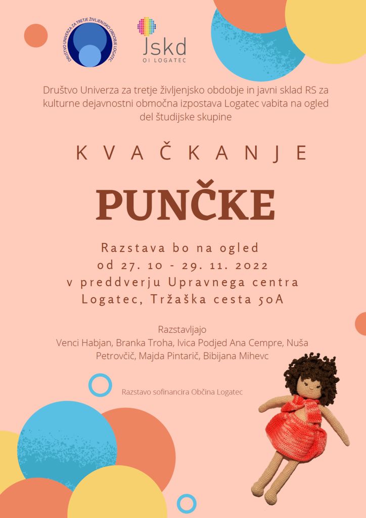 Društvo Unierza za tretje življenjsko obdobje in Javni sklad RS za kulturne dejavnosti območna izpostava Logatec vabita k ogledu razstave kvačkanih igračk. Skupina kvačkaric v Društvu UTŽO Logatec deluje pod mentorstvom Magde Nicolleti. Skozi desetletno druženje so članice postopno napredovale od osvajanja osnov do vedno zahtevnejših tehnik in vzorcev. Ob ustvarjanju ter izmenjavi izkušenj in idej so se razvile že v prave kvačkarske mojstrice. Svoje izdelke so tudi že večkrat predstavile na razstavah v domačem mestu.