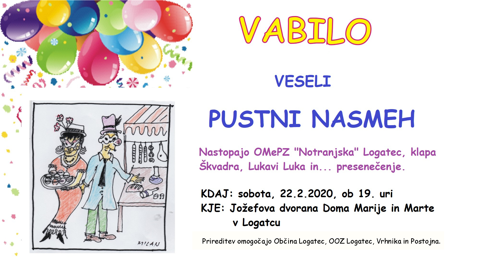 KD OMePZ »Notranjska« prireja veseli Pustni nasmeh v soboto, 22. februarja ob 19. uri v Jožefovi dvorani Doma Marije in Marte v Logatcu.