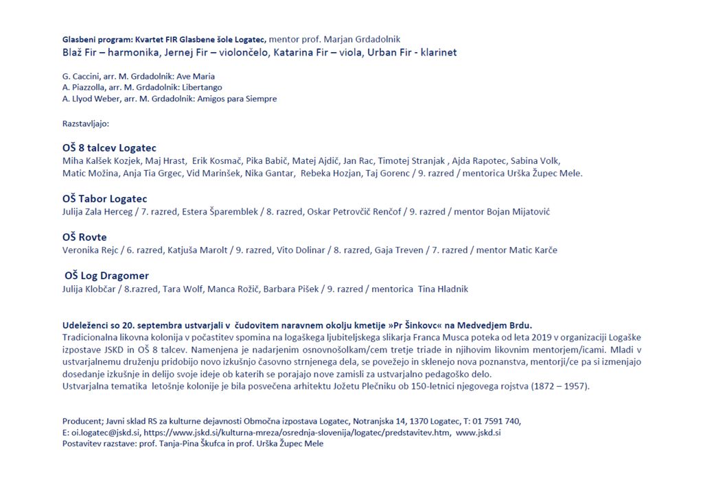 Vabimo vas na slovesno odprtje razstave 4. likovne kolonije Franca Musca, ki je 20. septembra 2022 potekala na kmetiji Šinkovc na Medvedjem Brdu.