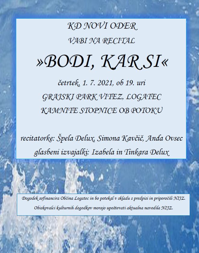 KD Novi oder vabi na recital "Bodi, kar si" s pesmimi različnih avtorjev in avtoric, znanih, manj znanih in tudi (še) neznanih. Recitacije/deklamacije bo "pospremila" glasbena popestritev.
