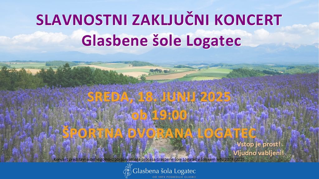 Prisrčno vabljeni na zaključni slavnostni koncert Glasbene šole Logatec, s katerim bomo sklenili še eno uspešno šolsko leto!