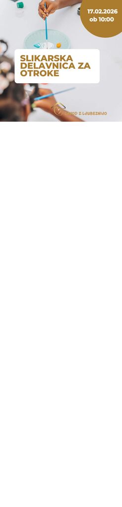 Vabimo otroke na čarobno slikarsko delavnico, kjer bomo skupaj raziskovali barve, ustvarjali brez pravil in se prepustili domišljiji. S posebno tehniko akrilnega vlivanja bodo otroci ustvarili čisto svojo, unikatno sliko, ki jo bodo z veseljem odnesli domov.