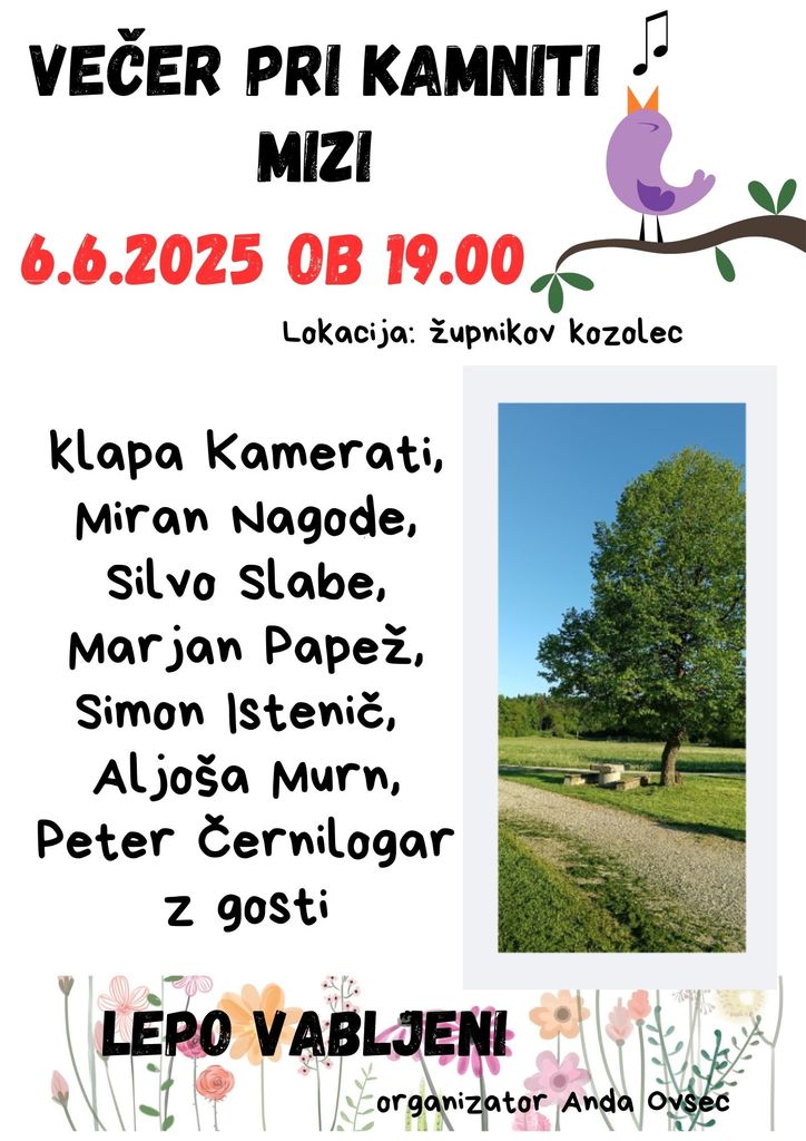 Spet se bomo zbrali pri kamniti mizi, pod lipo, pri župnikovem kozolcu. Pripravljen je pester program glasbenikov, recitatorjev, pripovedovalcev .....