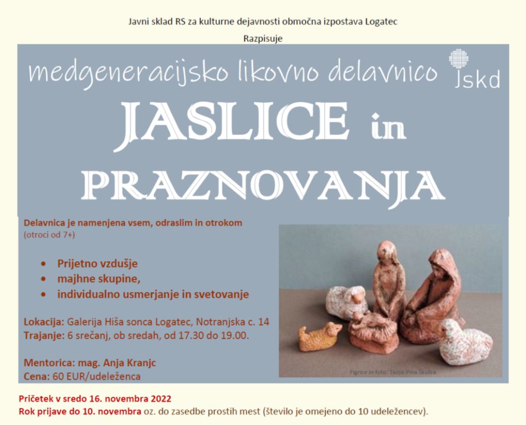 Najprej posvetili izdelavi jaslic v glini in kamenini. Uporabili bomo več vrst gline, od črne, sive, peščene do bele. Ustvarjali bomo vse figure, od svete družine, pastirjev, kraljev do živali. Žgane glinene figurice bomo tudi glazirali in figurice predvidoma predstavili na decembrski razstavi jaslic.