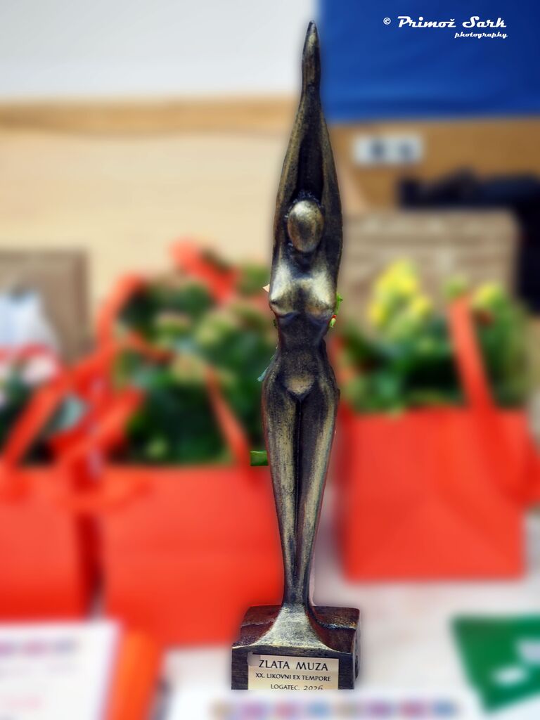 Žirija je tako za najboljše likovno delo in nagrado ZLATA MUZA 2026, podelila likovnemu delu na temo Vedute Logatca, z naslovom LOGATEC, v tehniki akvarela, avtorice Olene Vovchenko.