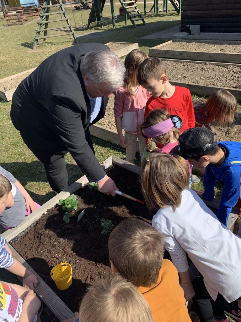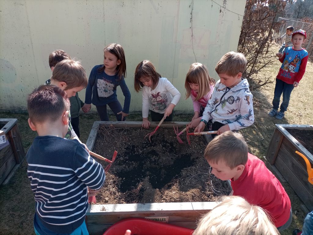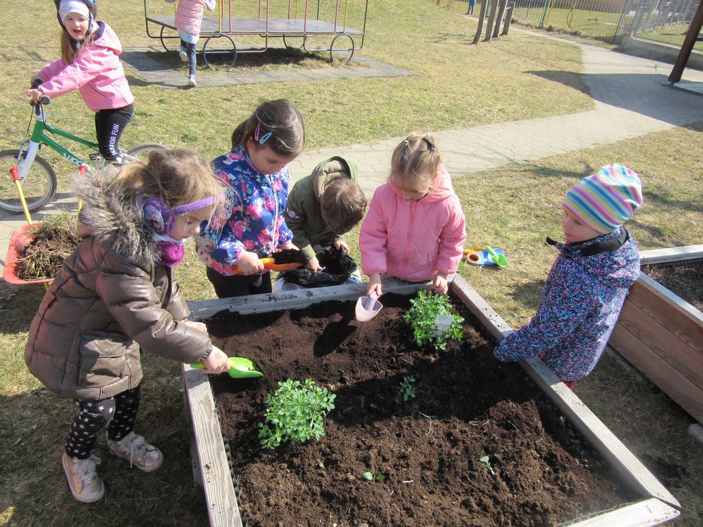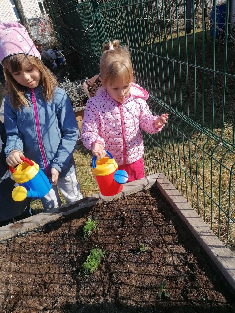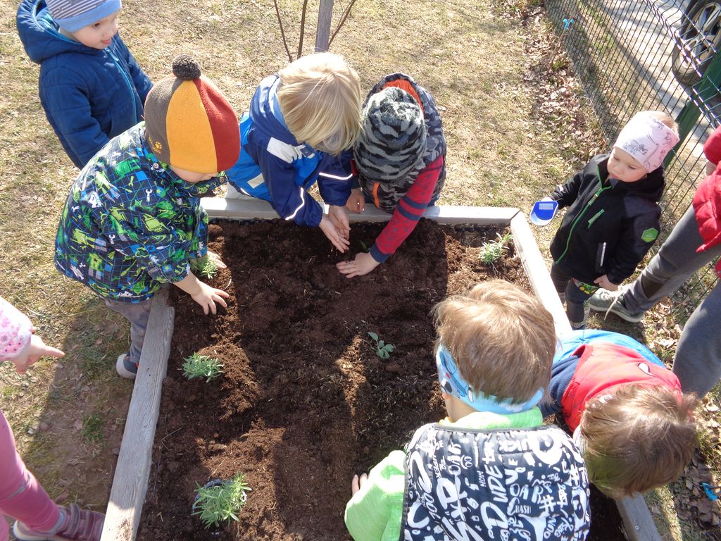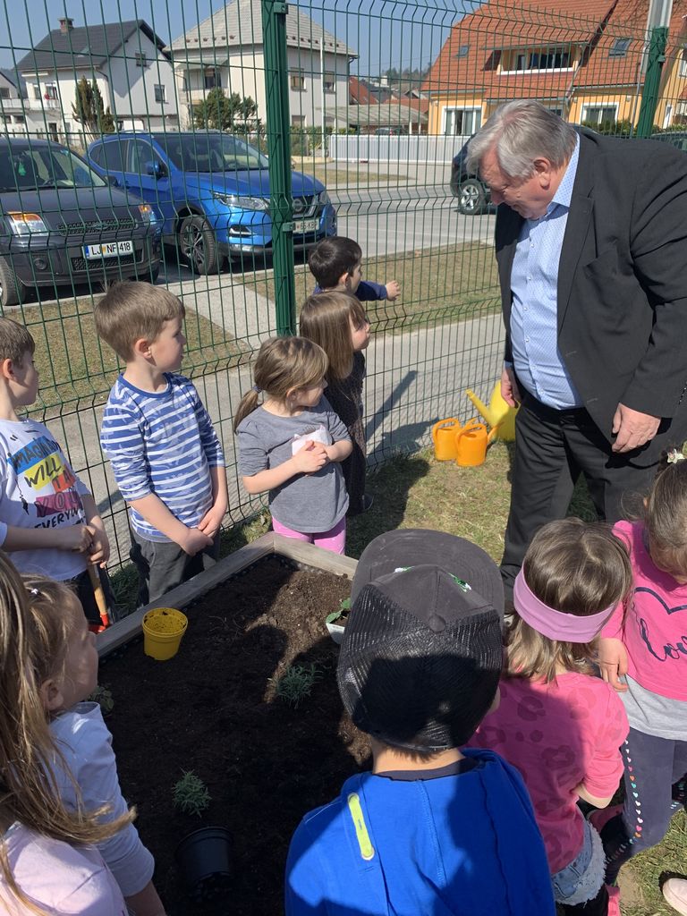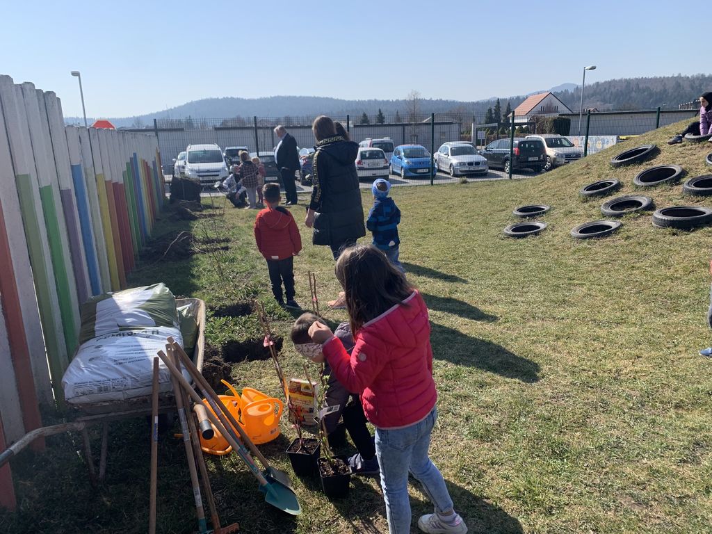 Akciji »Dan vseslovenskega sajenja medovitih rastlin« so se pridružile vse enote vrtca. Občina Logatec je priskrbela sadike, otroci so jih ob pomoči vzgojiteljic z veseljem posadili v posode in grede. S tem bodo čebelam zagotovili potrebno hrano, sami pa bodo uživali v vrtu polnem zdravilnih zelišč in dišavnic. Na dan zasaditve jih je v Centralni enoti obiskal tudi župan Berto Menard in jim pomagal pri saditvi malin, robid, ribeza, sivke, ameriškega slamnika, rožmarina… Otroci so bili aktivni ter pripravljeni sodelovati. Tako otroci kot vzgojiteljice se veselijo, da bodo rastline opazovali pri njihovi rasti, skrbeli za njih in se z nekaterimi tudi posladkali.