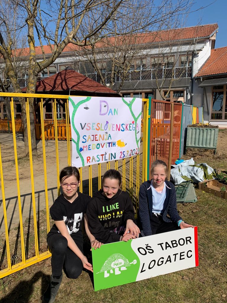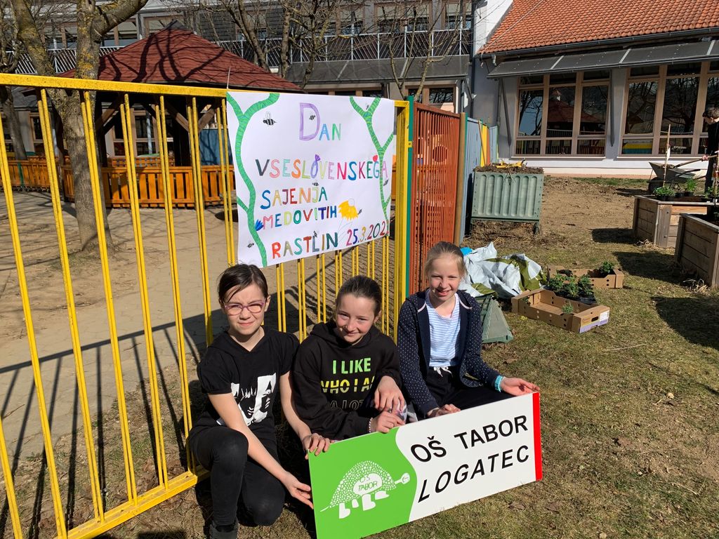 Tudi člani čebelarskega krožka OŠ Tabor Logatec so se pridružili vseslovenski akciji sajenja medovitih rastlin. V visoke grede so posadili medovite trajnice, maline in jagode, ki bi brez opraševalcev obrodile v manjšem obsegu. Dan sajenja medovitih rastlin je bil tudi zaključek dlje trajajoče obnove šolskega vrta. Člani čebelarskega društva so ponosni tudi na novo pridobitev - hotel za čebele samotarke. Posajena zelišča bodo uporabili v šolski kuhinji in z njimi pripravili različne namaze, čaje...
