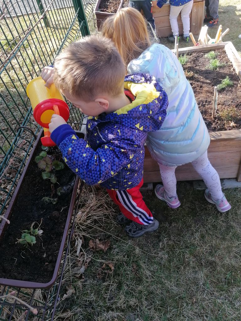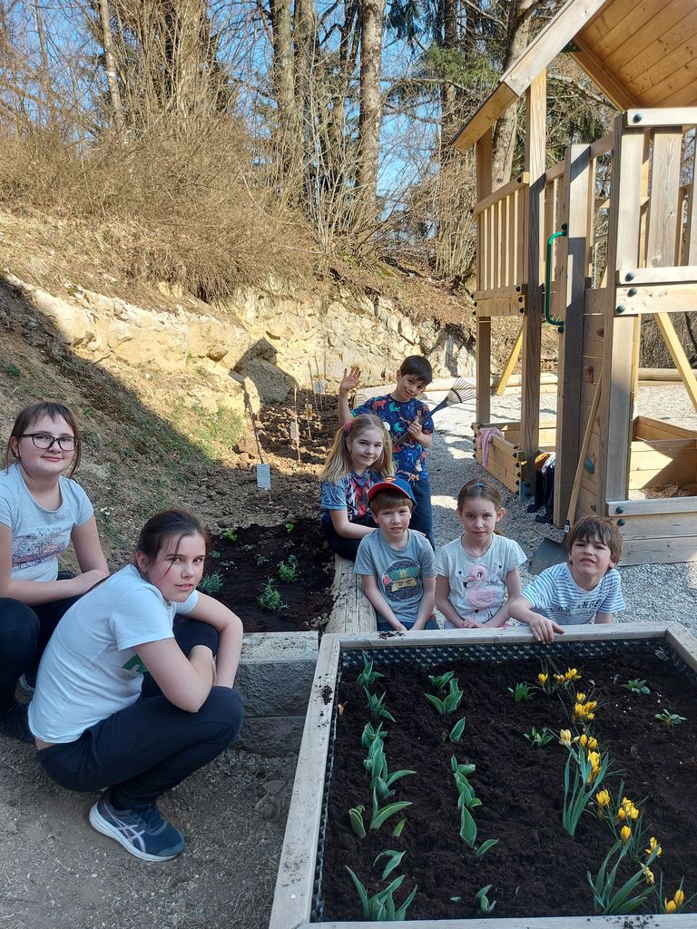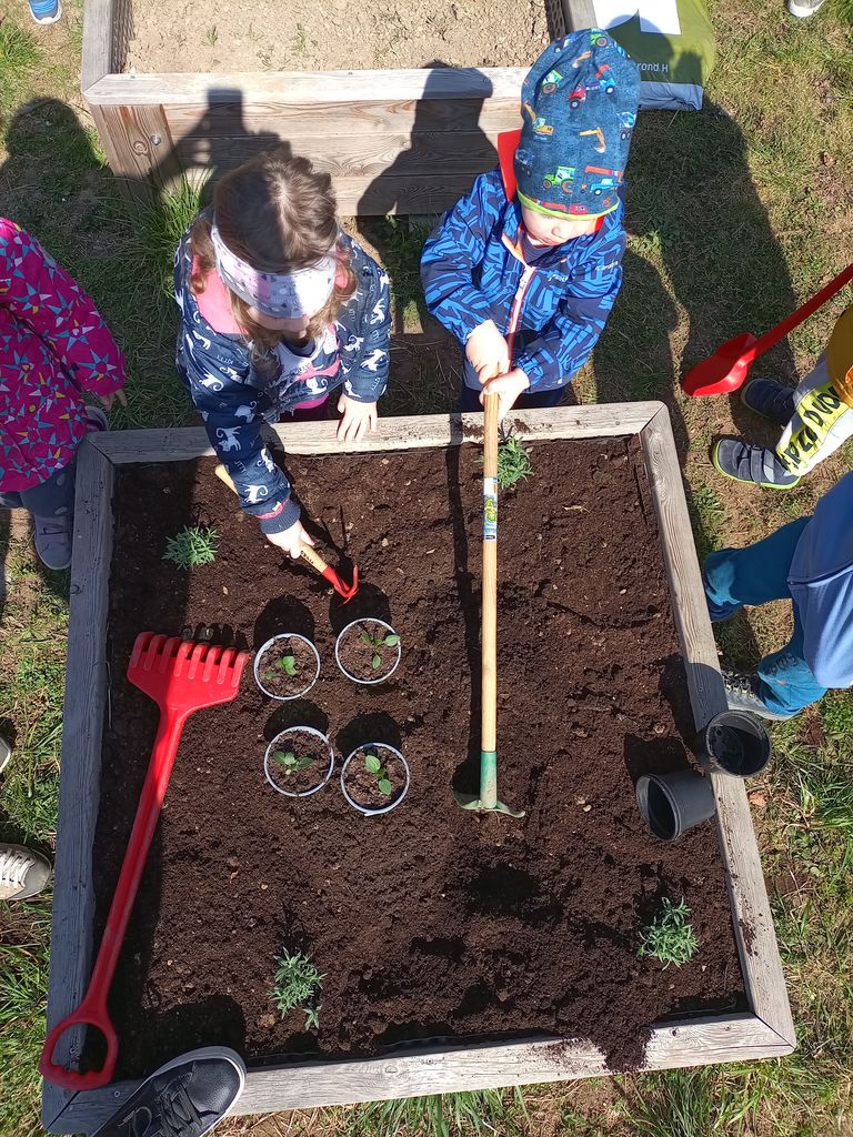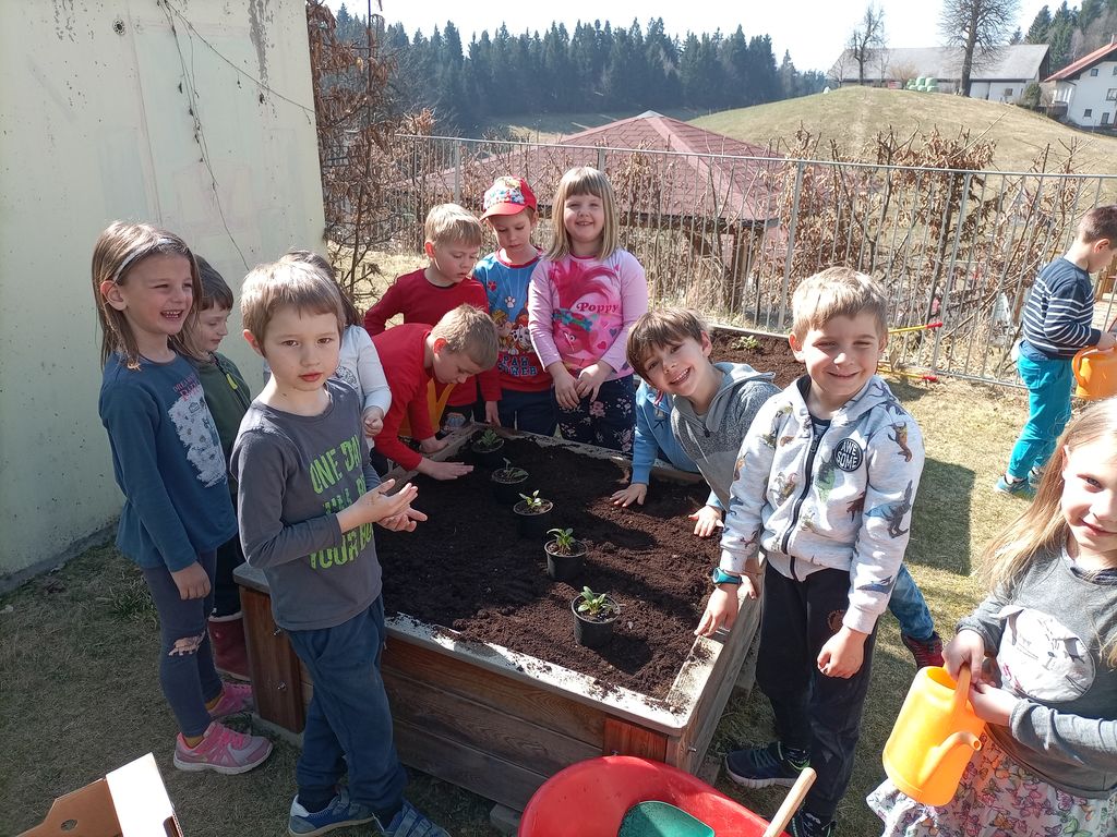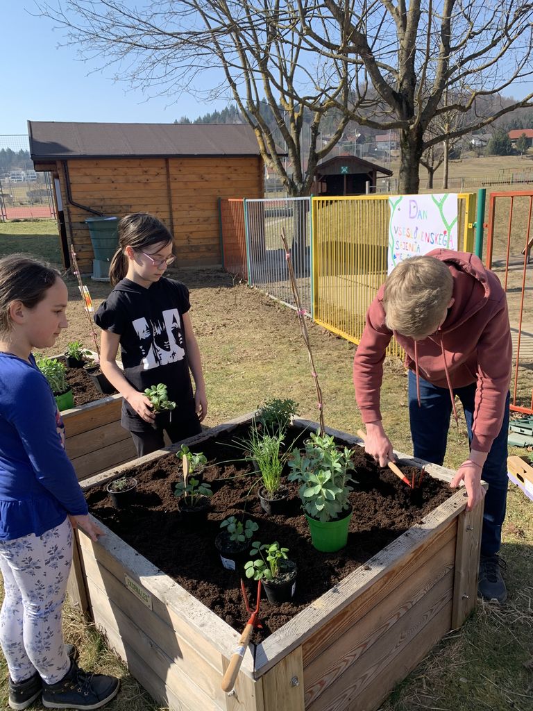 V POŠ Vrh Svetih Treh Kraljev so na dan sajenja medovitih rastlin imeli Eko dan. Na novem vrtičku so posadili sadike lanskih jagod, malin, robid in ribeza ter nekaj zelišč. V visoke grede bodo medovite rastline posejali v prihodnjih tednih, ko bodo jutranje temperature malo manj zimske. Otroci so z veseljem posadili vsak svojo sadiko in komaj čakajo na prvi letošnji sladki pridelek.
