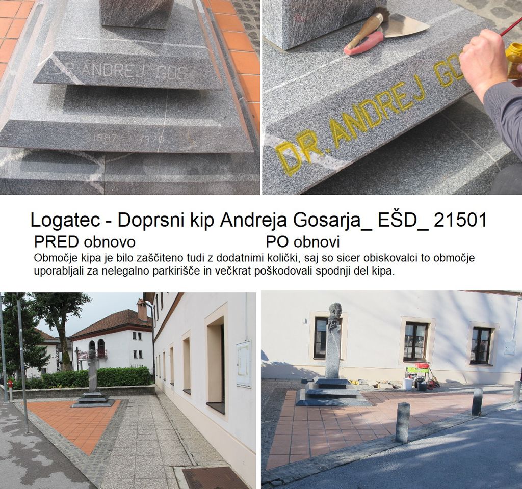 Nad sanacijami je vseskozi bdel Zavod za varstvo kulturne dediščine, ki so pripravili vse kulturno varstvene pogoje in soglasja. Zavod je bil obveščen tudi o več primerih vandalizma. O slednjih so prijave dobili tudi na Policijski postaji. Zaradi vandalizma je bilo potrebno določene enote obnavljati večkrat. Za te namene je bilo porabljenih kar 4.318,80 eur. Vandalizmu najbolj izpostavljene enote kulturne dediščine so sedaj tudi pod videonadzorom.